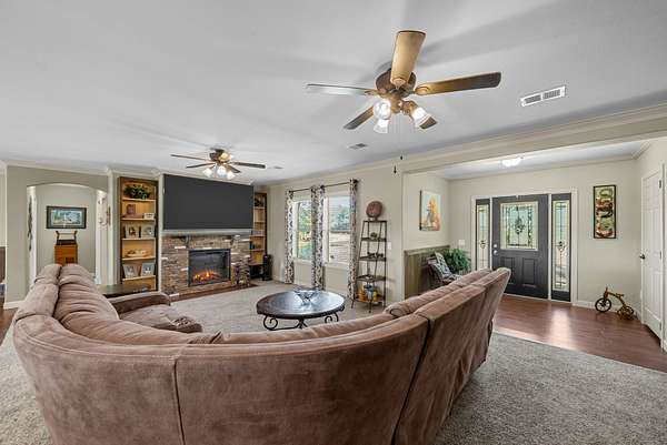 Discover this private retreat in Buchanan, just minutes from beautiful Kentucky Lake. Set on a spacious 4 acre tract of land, this custom modular home offers comfort, privacy and all the amenities for resort-style living. The main home features an open-concept design, generous living spaces perfect for entertaining. Step outside to the large covered porch and step down to enjoy a sparking inground pool with a surrounding patio, pool house for snacks and gazebo with surrounding deck for the ultimate entertaining space overlooking the stocked pond. Have guests? There is a one bedroom guest house with it's own septic and shared well for overnight visitors, hobbies, or extended stays. With acreage surrounding the property, you will enjoy the peace and seclusion of country living while still being close the the lake, marina's and local conveniences. Whether you're looking for a full-time residence, vacation home, or investment property, this home is ready to offer the perfect lifestyle.