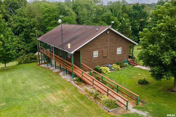 Location!!!Your dream mini farm awaits! Tucked away on nearly 4 acres just minutes from Panther Den and the breathtaking Shawnee National Forest, this lodge style retreat offers the perfect blend of rustic charm and modern comfort. The property features a 30 x 40 barn with a 12 foot overhang- ideal for livestock, storage or workshop setup. Inside the walk out basement includes a cozy wood burning stove efficiently heats the entire home, in addition to traditional central heat and air for year round comfort. One of the homes standout features is the wrap around porch offering panoramic views of the scenic Southern Illinois landscape in every direction. Whether you are dreaming of a hobby farm, weekend getaway or peaceful forever home. This is a must see in the heart of nature.