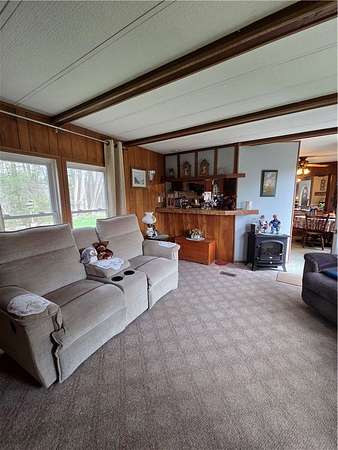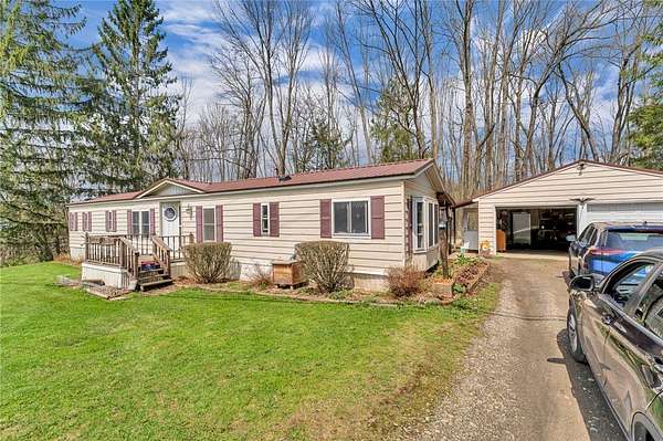 Charming Country Retreat on 2 Acres-Move In Ready! Discover the perfect blend of comfort, space and natural beauty with this well-maintained 2-bedroom, 2-bath manufactured home set on a spacious 2-acre lot. Step inside to find many updates throughout. The home features newer windows and exterior doors, an updated shower-tub and a full suite of appliances including a new washer and dryer, gas stove, and a refrigerator, making it truly move in ready. Additional highlights include: 2-car detached garage with new doors and automatic opener Durable metal roofs on both the home and garage (40-year transferable warranty) Updated well pump, oil tank, pressure tank and electric hot water heater Scenic creek running along back of the property Survey available for buyer review Outside, enjoy the peaceful setting with a large open yard above and an abundance of established plantings. Garden lovers will appreciate the potting shed and the blueberry bushes, grape arbor, raspberry and blackberry patches, and multiple perennial gardens featuring peonies, lilacs, and an October Glory tree that adds stunning seasonal color. This property offers a rare opportunity to enjoy country living yet only a few miles to Norwich. Whether you are relaxing in the gardens or enjoying the open space, this home is ready to welcome its next owner.