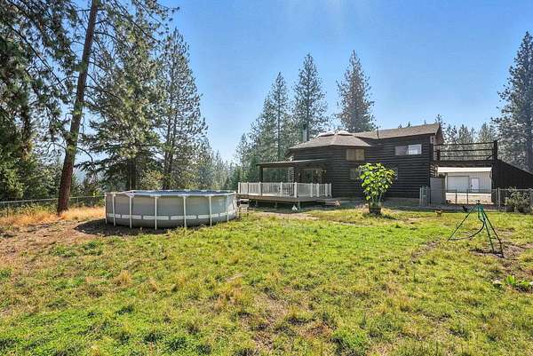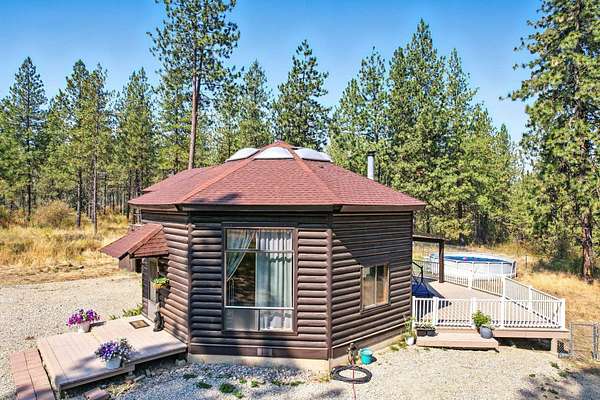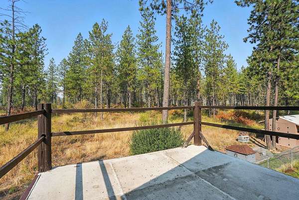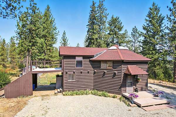 Discover 40 acres of privacy, recreation, and opportunity just 35 minutes from Spokane! This hand-crafted 1,200 sq. ft. log home features 1 bedroom, 1 updated bath, a spacious loft, open-concept living, large windows, and a cozy wood stove. Recent updates include a rebuilt front deck, new back deck railing, freshly graveled driveway, new HVAC & heat pump (2025), updated shower & vanity, and new refrigerator & kitchen sink. The property includes 27 acres of timber, 13 acres of pasture, an apple orchard, cherry trees, and a large garden area. Outbuildings include a historic log barn, large chicken coop, and a 40'x30' insulated 3-bay garage with 220 power. Two wells provide over 40 GPM combined. Ideal as a homestead, hobby farm, horse or cattle ranch, or private retreat, with abundant wildlife and direct access to 1,200+ acres of Stimson Lumber Co. land for hunting, hiking, and exploring. Outdoor recreation abounds with Long Lake just minutes away and multiple lakes less than 45 minutes.