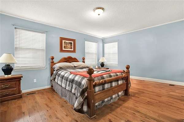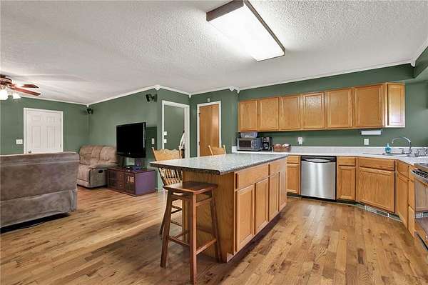 Property is USDA Eligible Qualifying for No Down Payment! - Level Lot - Concrete Walkway - Front Porch Feature White Railing, Columns, & Beadboard Ceiling - Three Dormer Windows Flood the interior with Natural Light - Flowing Polished Hardwood Flooring - Central Natural Stone Constructed Fireplace with Wooden Mantel - Hardwood Staircase with Wooden Handrails on both Sides - Large Window Positioned Strategically Providing Clear, Unobstructed View of the Entrance to Effortlessly Observe the Arrival of Guest - Added Convenience for Potential Buyers the Blinds Convey Offering Additional Layer of Privacy & Light Control - Open Layout Kitchen Enhancing Easy Flow & Functionality - Wood Cabinets Integrated to Fit the Kitchen Layout Perfectly Maximizing Storage Space & Accommodate All Culinary Necessities - Window Above Kitchen Sink Make Chore More Enjoyable - Dedicated Laundry Room with Open Shelving Facilitates Clutter Free Environment - Walk-In Closets - Large Whirlpool Soaking Tub & Separate Tile Shower - Tile Flooring Extends Up the Wall Blending Perfectly - Distinguished Den Space Framed with Crisp White Crown Molding, Ensures Generous Seating Arrangements - 16X34 Back Deck With White Vinal Railing Offer Ample Space for Lounging, Social Gatherings, & Ideal Venue for Hosting Memorable Occasions - 2 Car Garage Providing Security & Keep Your Vehicle Safe from the Elements - Metal Roof Offers Durability, Longevity, & Results in Significant Savings on Energy Bills - 20X30 Boat Garage Equipped with Central Heating & Air, Double Garage Door, & Remote Control Access for Effortless Entry & Exit - 18X36 Metal Carport with Peaked Roof - Additional 12X24 & 12X12 Storage Buildings - Picture Perfect Pond Mirrors the Sky Surrounded by Lush Trees - Sence of Seclusion No Back Neighbors!