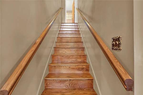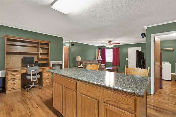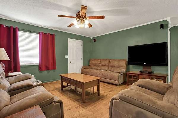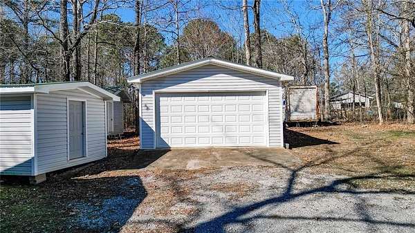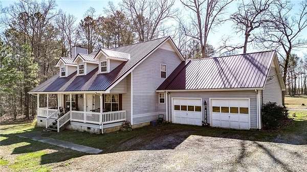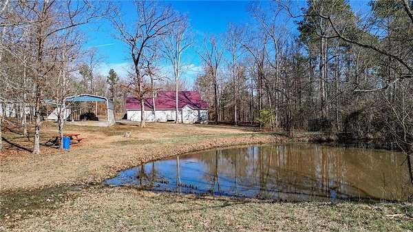 USDA Eligible - Qualifies for No Down Payment! Level lot with concrete walkway and front porch featuring white railing, columns, and beadboard ceiling. Three dormer windows flood the interior with natural light. Flowing polished hardwood flooring, central natural stone constructed fireplace with wooden mantel, and hardwood staircase with wooden handrails on both sides. Large window positioned strategically providing clear, unobstructed view of the entrance to effortlessly observe the arrival of guest. Blinds convey for added privacy and light control. Open layout kitchen enhancing easy flow & functionality with wood cabinets integrated to fit the kitchen layout perfectly maximizing storage space, plus window above kitchen sink. Dedicated laundry room with open shelving facilitates clutter free environment. Walk-in closets, large whirlpool soaking tub, separate tile shower, and tile flooring extending up the wall blending perfectly. Distinguished den space framed with crisp white crown molding ensures generous seating arrangements. 16X34 back deck with white vinal railing offers ample space for lounging, social gatherings, and hosting memorable occasions. 2 car garage providing security and keep your vehicle safe from the elements. Metal roof offers durability, longevity, and significant savings on energy bills. 20X30 boat garage equipped with central heating & air, double garage door, and remote-control access. 18X36 metal carport with peaked roof plus additional 12X24 & 12X12 storage buildings. Picture perfect pond mirrors the sky surrounded by lush trees. Sence of seclusion - no back neighbors!!!