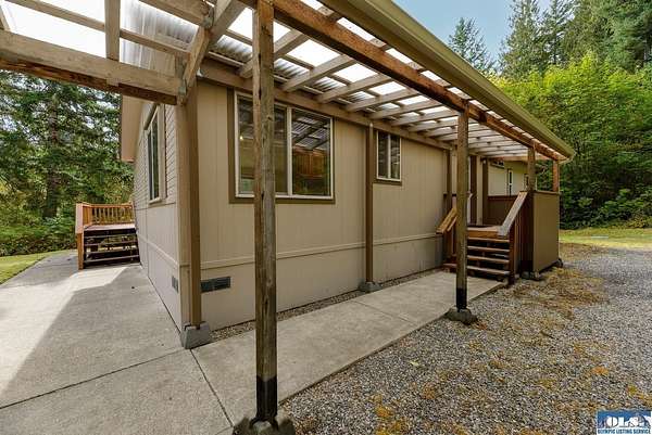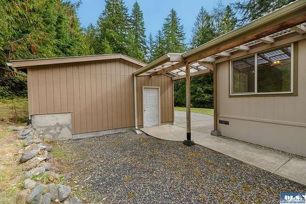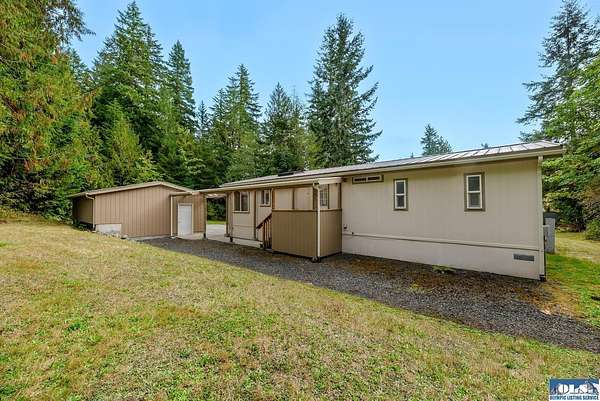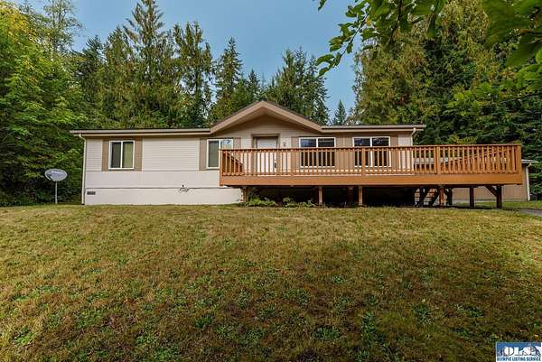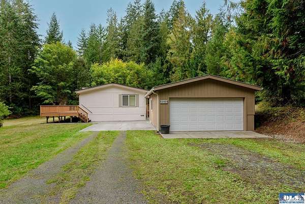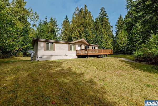 Priced reduced! Ready to enjoy the peace and quiet of country living? Look no further than this 2 bed/2 bath manufactured home on over 2 acres. Home has approximately 1150 sq feet with an open layout and is move in ready. Huge deck in front for easy entertaining or relaxing in solitude. Covered breezeway in back connecting to detached double car garage and patio area. Fruit trees and room to garden. Wooded acreage keeps it private. Enjoy the freedom of No CC&R's and No HOA. Conveniently located close to Salt Creek Recreational Area and Crescent Beach with a short drive to both Lake Sutherland and Lake Crescent.