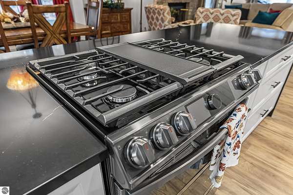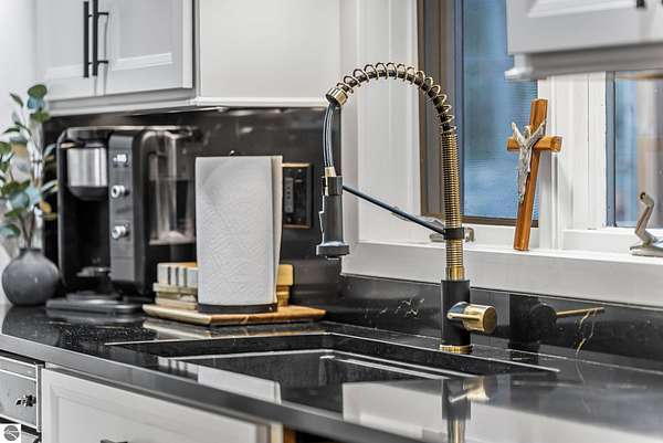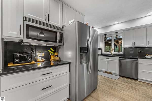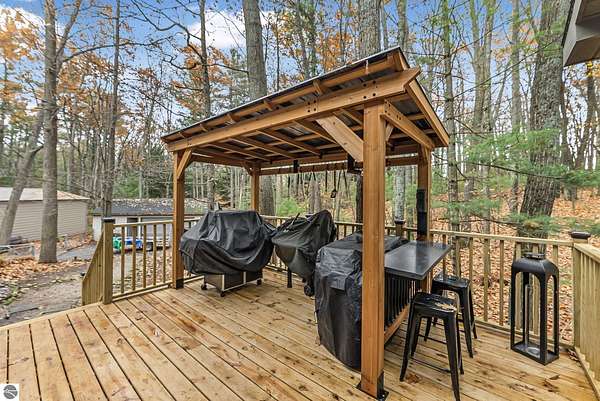 Lake Ann Dream Home: Modern Luxury Meets Up North Adventure! This fully renovated 4-bedroom, 2.5-bath home sits on over 3 wooded acres with true lakefront on beautiful Lake Ann. Enjoy all the benefits of lake living without the high lakefront taxes--the home and lakefront are on separate parcels with two tax IDs! Paddle, fish, or relax on your private dock. Inside, you'll find a chef's kitchen with gold accents, black quartz counters, a premium gas range, and generous space for entertaining. The home features a relaxing hot tub room, cozy fireplace, and spacious living and dining areas. Bedrooms offer peaceful views, and the huge garages provide ample room for vehicles, toys, or hobbies. Backs up to state land for added privacy--enjoy wildlife right outside your window. This is the best of both worlds: lakefront living and acreage, but a smarter tax bill.