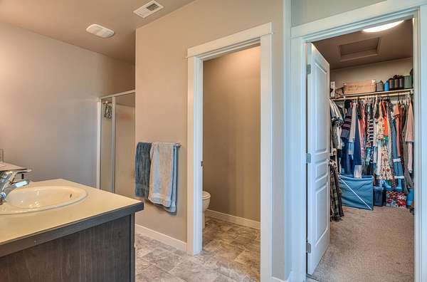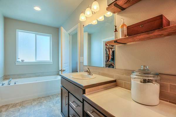 - Breakfast Bar, Built-In Features, Ceiling Fan(s), Double Vanity, Enclosed Toilet(s), Fiberglass Stall Shower, Granite Counters, High Speed Internet, Kitchen Island, Linen Closet, Open Floorplan, Pantry, Primary Downstairs, Shower/Tub Combo, Smart Thermostat, Soaking Tub, Vaulted Ceiling(s), Walk-In Closet(s)