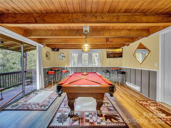 Charming 2 BR / 2 BA mountain home located just a few miles outside of Banner Elk, NC. This fully-furnished jewel is a current successful short-term rental sitting on approx 5 acres of hillside. Inside you are greeted with a nice living area with a kitchen and two good size bedrooms. Downstairs is where the fun happens with a pool table for your guests enjoyment. Outside you can enjoy the porches as well as the outdoor landscape with nature or enjoy a fire at the large firepit area. To maximize short term rental income you can convert the current game room to another bedroom and the one car garage into a large game room area.
