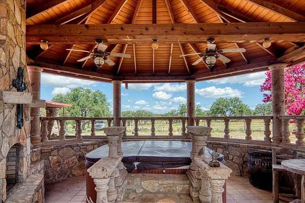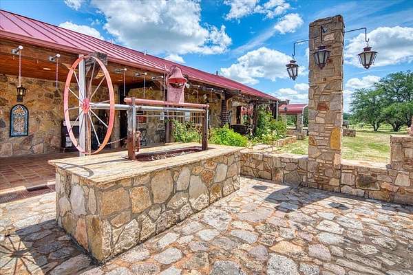 Just 11 miles west of Mason, this 389.55-acre Hill Country Ranch features over 1200 ft. of year-round, spring-fed Leon Creek. The landscape begins with open grazing fields and transitions into scenic hilltop terrain with panoramic views for miles. A 6,000 sq ft compound headquarters includes the main rock residence, two guest homes, multiple outdoor entertainment areas with BarBQ pits, and numerous outbuildings. There is also an outdoor pavilion with hot tub, and a large water fountain. Additional improvements include a horse barn with stalls, cattle pens, two green houses, three wells, (including a 50 GPM) and a large stocked tank with a fishing bridge. Wild life is abundant with white tail deer, turkey, hogs and more. All stands and feeders convey with the sale of the property. Whether you are looking for a recreational getaway, working ranch, or corporate retreat, Leon Creek Ranch offers Texas Hill Country living at its best.