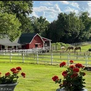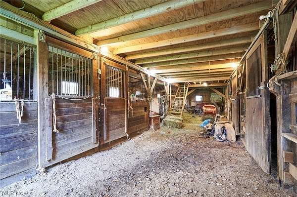 Attention Equestrians! This iconic horse property offers a rare opportunity to own 10 picturesque acres in Bath Township. From the moment you arrive at 535 Crystal Lake Road, you'll recognize the setting: rolling pastures, a striking red barn, & horses grazing against a backdrop of mature trees. The land is thoughtfully arranged with open pasture in front & a serene wooded retreat behind. The impressive 6+ stall barn spans approximately 5,700 sq ft, providing ample space for horses, equipment, and storage. The colonial home offers 6 BDs, including a first-floor primary suite addition. The formal living room features a fireplace & built-in corner cabinet, while the dining room across the foyer includes additional built-ins. The kitchen offers abundant counter space, storage, & a dining area with a picture window overlooking the rear grounds. Just off the kitchen, step down to a spacious family room with a custom stone wall, bar area, and rear staircase to the second floor. A rear sitting room provides access to both the pool and first-floor laundry. The primary suite includes an oversized bath with soaking tub beneath a stained-glass window, along with dual walk-in closets. Upstairs are 3 bedrooms and 2 full baths, plus 2 3rd-floor bedrooms, for a total of 6. A bonus room above the family room adds additional second-floor living space. The home retains much of its original character, offering an opportunity for updates and personalization, particularly in the upper levels and lower level. The basement offers a rec room with FP, ready for future improvement, plus additional storage. Outside, enjoy the beautifully maintained grounds and in-ground pool-ideal for relaxing after time at the barn. Five garage spaces across two detached garages provide excellent flexibility. A property combining location, acreage, and equestrian amenities like this is rare, with the added potential to make the home your own over time. Schedule your private showing today.