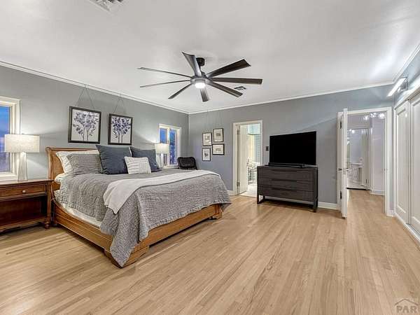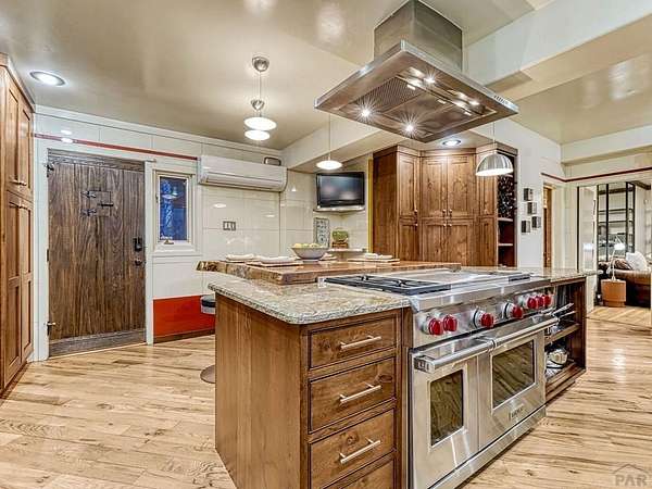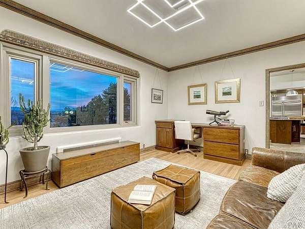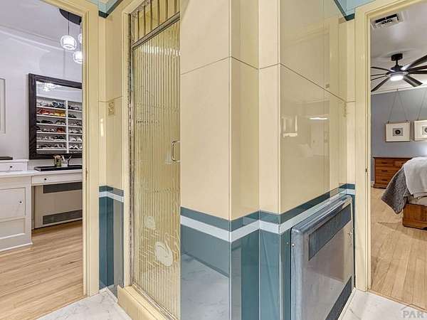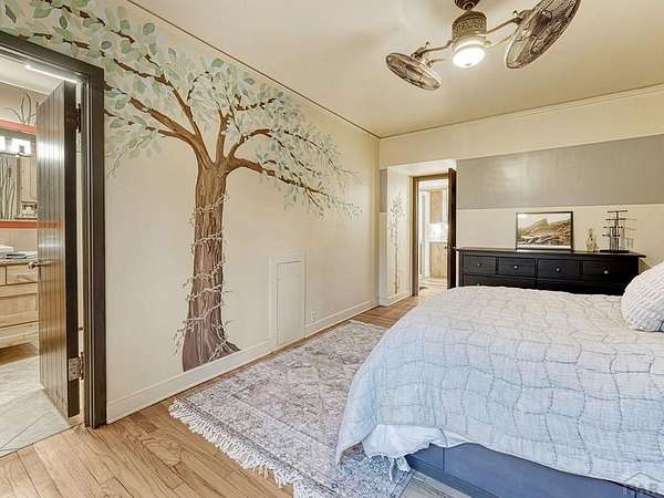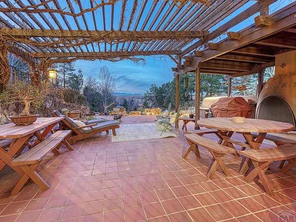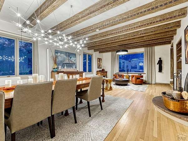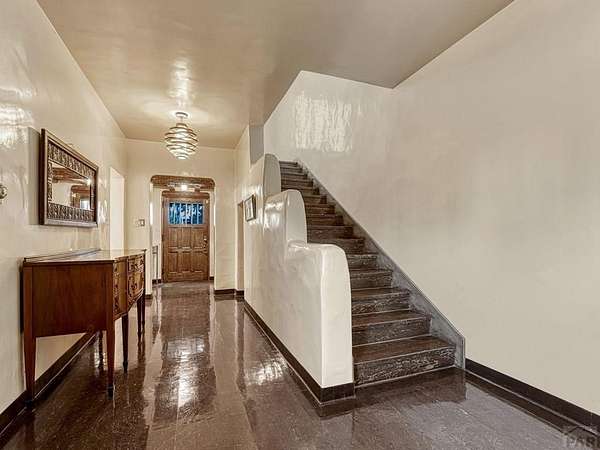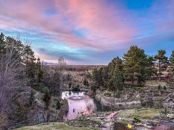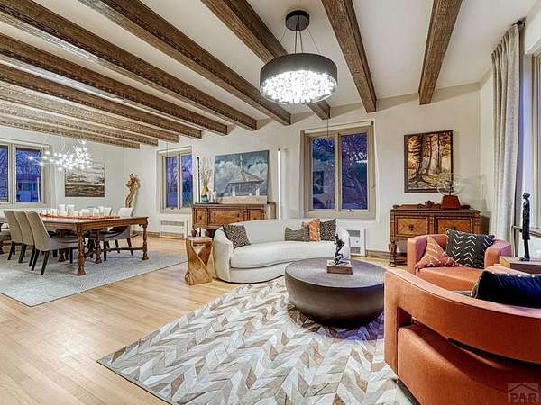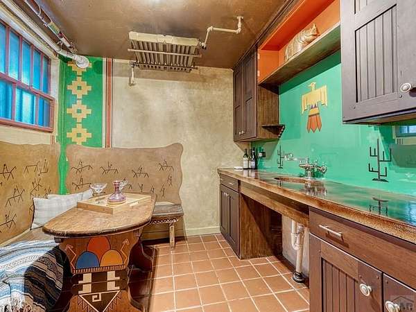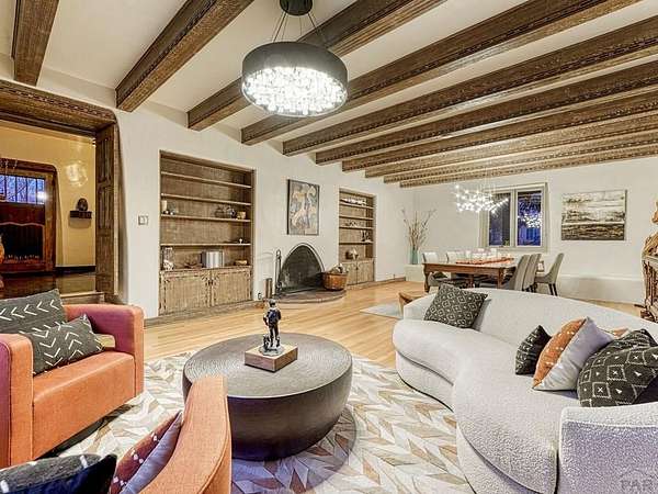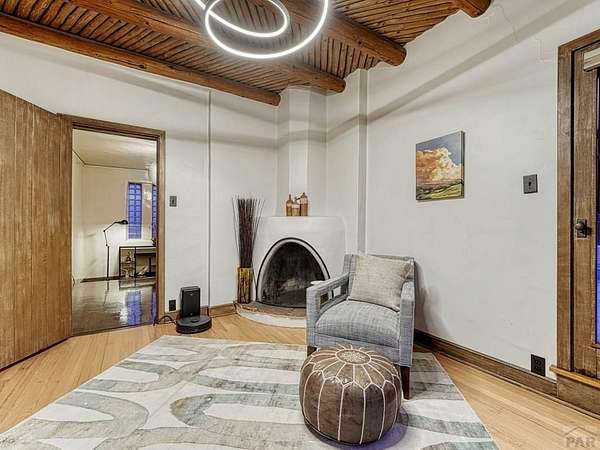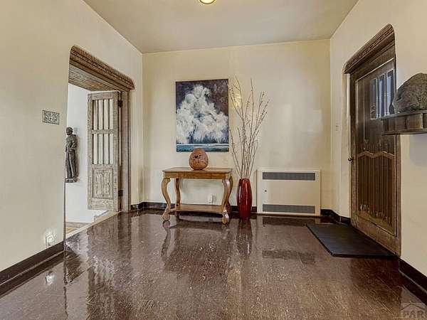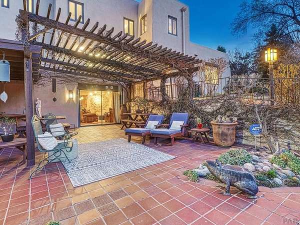 Introducing the Harold Florman House, a rare and authentic 1939 Pueblo Revival, one of the few true examples from the original 1900-1940 era, gracefully set on nearly 2 acres in Aberdeen. A designated Pueblo Historical Landmark and featured on the Denver Botanic Gardens registry, this is a once-in-a-lifetime offering. Rich in character and craftsmanship, the home showcases original hardwood, terra cotta tile, and art deco laminate flooring, hand-painted tilework and murals, vitrolite accents, hand-carved wood details, kiva fireplace, vigas, and beamed ceilings. Formal and informal living spaces offer warmth and versatility throughout. The upper-level primary suite is a private retreat with ensuite, sitting area with kiva fireplace and built-ins, dressing space, and rooftop access with potential for a secluded outdoor oasis. The main level includes a grand entry, spacious living and dining areas, kitchen, three bedrooms, and 2.5 baths. The lower level features a family room, cantina-style wet bar, laundry, storage and garage. A separate casita with bath offers ideal guest or studio space. Outdoors, enjoy a magical setting with two natural springs, a year-round koi pond, meandering paths, bridges, and a vine-covered trellis with wood-burning fireplace. The only residential property in Aberdeen on 1+ acre, this sanctuary offers privacy, beauty, and stunning sunset views over the Arkansas River and Pikes Peak, with direct access to City Park. A true legacy property. Apply today.