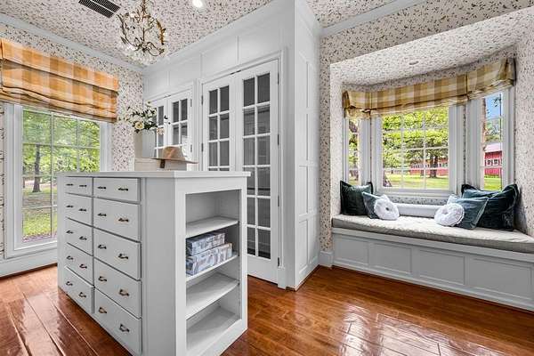 - Built-In Features, Cable TV Available, Cathedral Ceiling(s), Cedar Closet(s), Chandelier, Decorative Lighting, Double Vanity, Eat-In Kitchen, Flat Screen Wiring, High Speed Internet Available, Kitchen Island, Open Floorplan, Pantry, Second Primary Bedroom, Smart Home System, Sound System Wiring, Vaulted Ceiling(s), Wainscoting, Walk-In Closet(s), Wet Bar, Wired For Data
