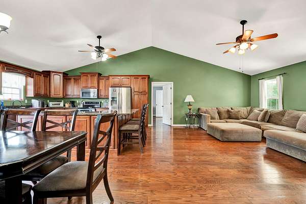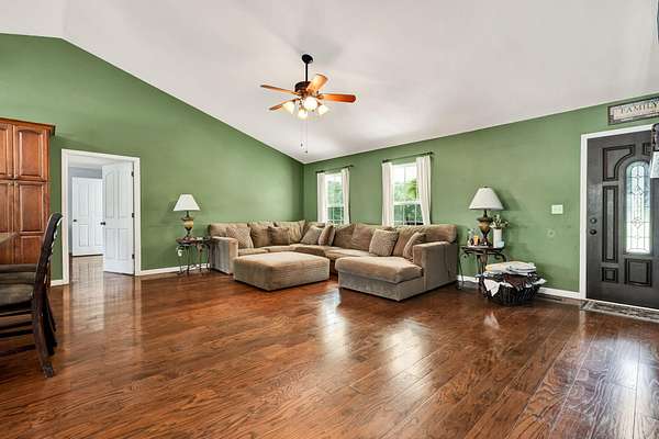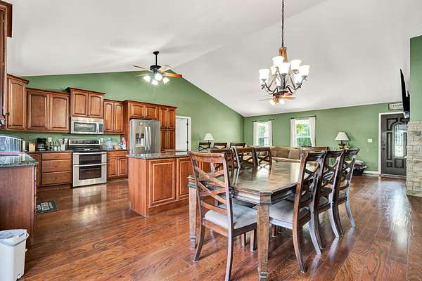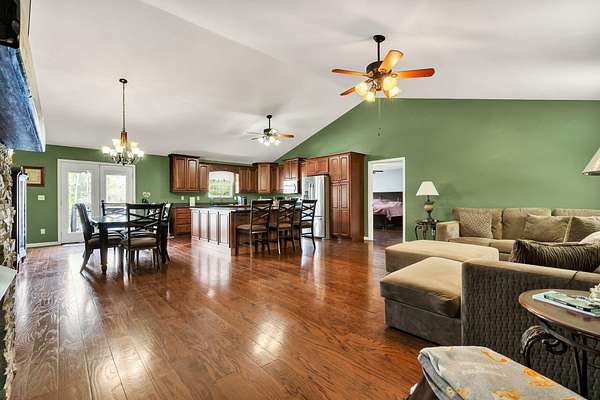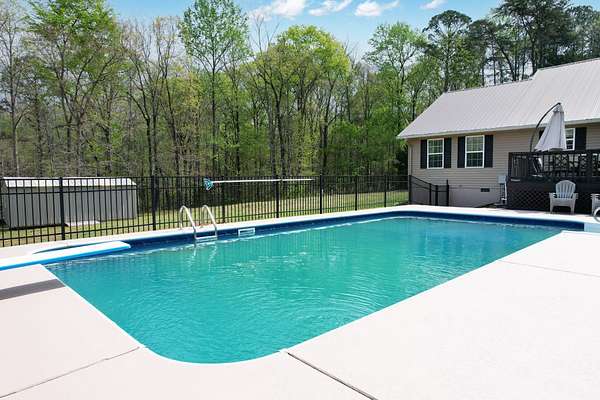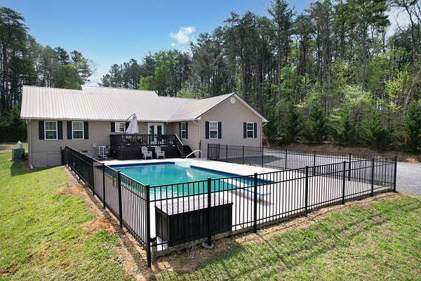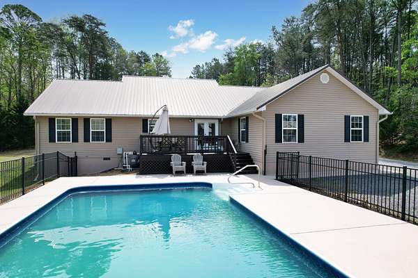 Private Retreat on Nearly 3 Acres! Tucked away on a secluded 2.89-acre flag lot, this 2012-built single-level home offers the perfect blend of privacy, functionality, and outdoor enjoyment. Featuring 3 bedrooms, 2 full baths, and a 2-car attached garage, the home is designed for easy, one-level living. Step outside and discover what truly sets this property apart--multiple outbuildings and spaces tailored for both work and play. A detached metal 2-bay garage provides ample room for equipment, hobbies, or storage, while the attached finished ''man cave'' with half bath creates the ultimate hangout, workshop, or game-day retreat. The outdoor amenities are just as impressive. Enjoy a fenced-in saltwater in-ground pool with a new liner and filter-ready for summer days ahead. A separate pavilion overlooking the stocked pond offers the perfect spot to unwind, entertain, or take in peaceful water views. Additional storage shed included for even more flexibility. The property is surrounded by scenic pasture views and delivers stunning sunset backdrops, all while maintaining exceptional privacy--you won't see this home from the road. A sump pump has been installed in the crawlspace for added peace of mind during wet seasons. Offered at $500,000, this one-of-a-kind property combines space, privacy, and lifestyle in a way that's hard to find.