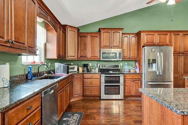 - Bathroom Mirror(s), Ceiling Fan(s), Granite Counters, Open Floorplan, Primary Downstairs, Walk-In Closet(s), Walk-In Shower