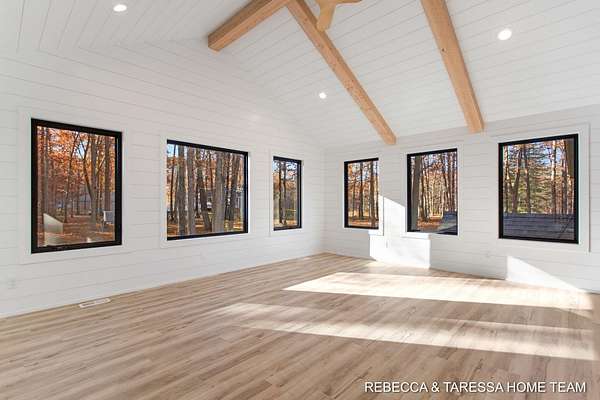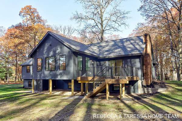 Discover true privacy and luxury in this fully renovated ranch-style home, nestled on 4 private, wooded acres located in Award-Winning Hudsonville Schools. Transformed from top to bottom, this home is a sanctuary offering seclusion and tasteful modern finishes. The heart of the home is a brand new spacious Four Season Room, boasting dramatic beams and an abundance of glass for year-round views overlooking the private yard and mature trees. This room seamlessly leads out to a new, low-maintenance Trex deck with stairs, perfect for entertaining or relaxing outdoors. The tranquil Primary Suite features a spacious walk-in closet and leads to a spa-like bath, equipped with a large, beautifully tiled walk-in shower with glass door, a stunning free-standing tub, and more high-end finishes for a true retreat experience. You will also appreciate the secluded main floor den or office offering a fireplace a useful storage closet and has access to the deck. The lower level was completely redone, offering extensive finished space, including the addition of a third full bath, a spacious new laundry area, 2 additional bedrooms and a large family room. Outside, find an exceptional, remodeled 32 x 60 partially heated outbuilding with 3 9' overhead doors which has received a complete revamp, including new siding, shingles & windows, perfect for hobbies, storage, or business needs. Every inch of this property was touched including new trusses, shingles, windows, siding, electrical, furnace, kitchen, baths, landscaping and the list goes on. See attachment for a detailed list. This meticulously updated walk out ranch home offers a rare combination of modern luxury, seclusion, and a prime location. Future value is secured by the potential 2-acre split (available in 2029 or earlier) with existing private road access, providing a significant investment opportunity.