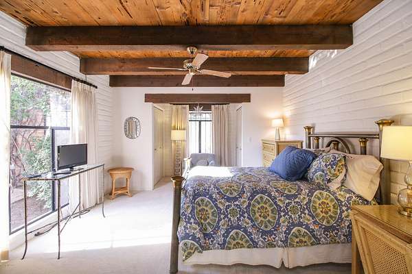 FULLY FURNISHED 3 bedroom home. Mexican colonial gem in the Catalina Foothills. Stunning views from every room! 2 Bedroom main house with attached guest quarters. Fabulous courtyards for outdoor entertaining with water feature. Lots of unique local touches throughout. Spacious kitchen with updated appliances. BEDS: King/Full/2-twins in guest quarters. Master bed is two tempur-pedic twin beds together, and are individually adjustable. January - March Rate $4500.00 Please call for exact pricing and availability.