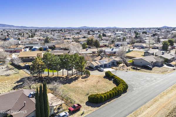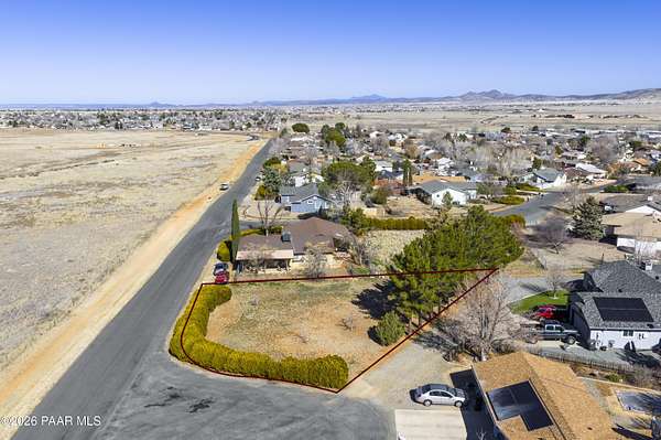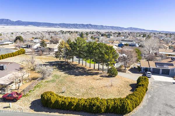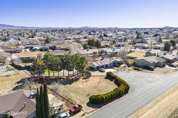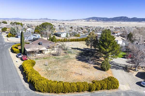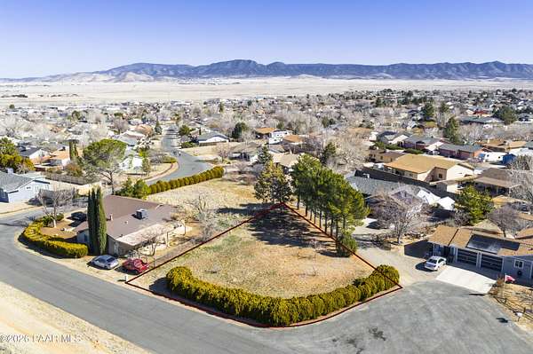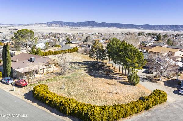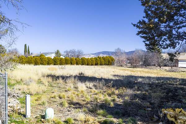 Rare opportunity to own a flat, usable vacant lot in an established Prescott Valley neighborhood. Located across the street from state land, this parcel offers a peaceful setting with open views and added privacy.Unlike many area lots, the property is natural dirt rather than rock-covered, making it easier to build. A row of mature pine trees borders one side of the lot, while a privacy hedge along the front and side enhances seclusion and tranquility. Property lines are partially defined with chain link fencing at the rear, with fencing also along the pine tree line and hedge boundary.Water and sewer are at the property line, gas is available in the area, and electricity is approximately 200 feet away via easement. Ask APS for their credit of up to $10,000 toward bringing power to the lot . Conveniently located near shopping, schools and medical services, this parcel offers the perfect blend of privacy, accessibility, and future potential. A rare flat lot with privacy, utilities and state land across the street --don't miss this opportunity.