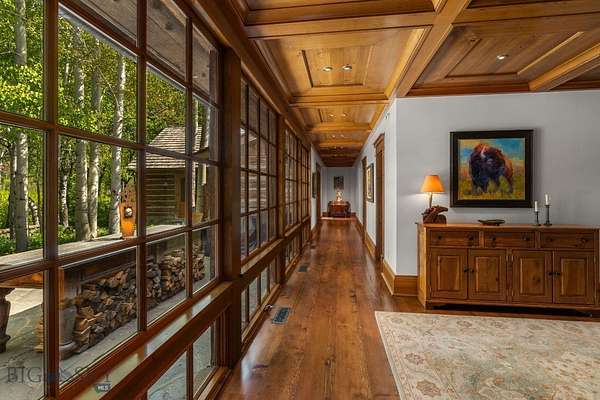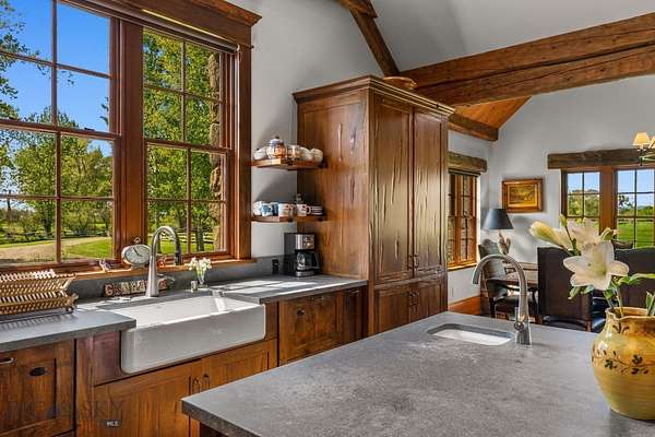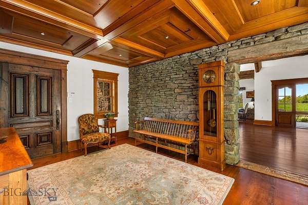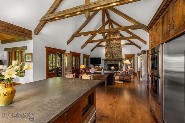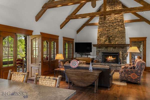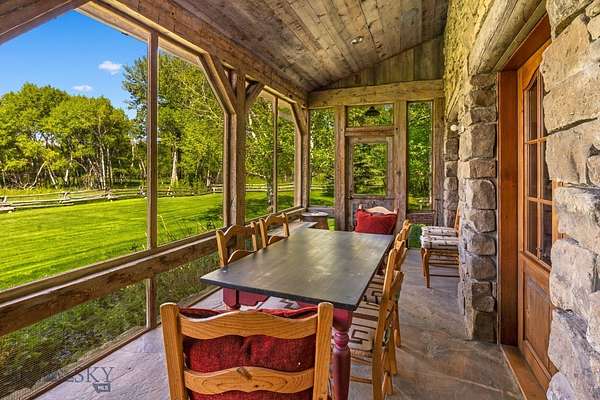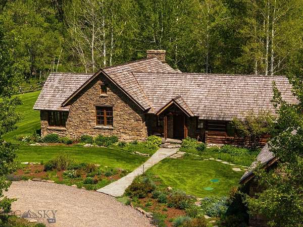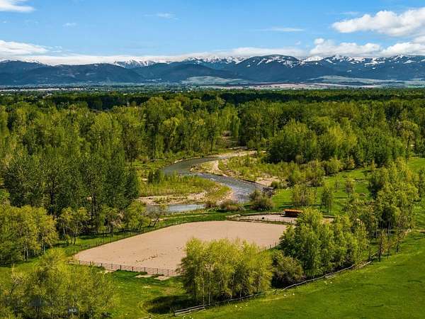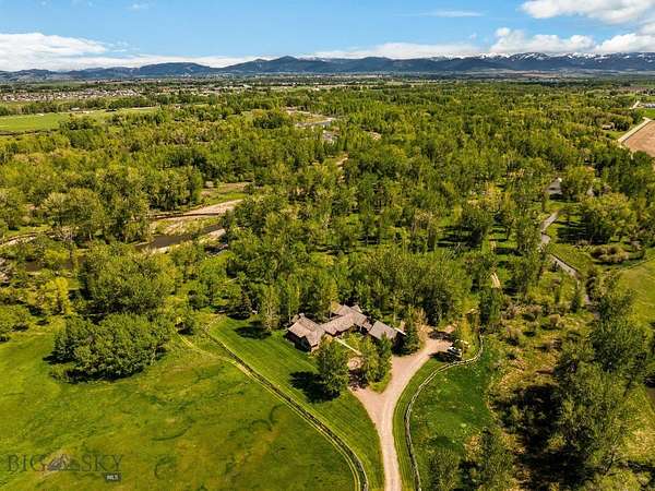 Nestled on 163+/- acres of pristine Montana landscape, 5350 River Road is a masterpiece of architectural harmony, seamlessly blending luxurious improvements with the breathtaking beauty of over one mile of Gallatin River frontage. Just ten minutes from vibrant downtown Bozeman, this sanctuary feels worlds apart, offering unparalleled tranquility and natural splendor. Crafted with natural stone and reclaimed wood, the elegant yet rustic residence merges effortlessly with its riparian surroundings, as if born from the land itself. Towering cottonwoods and aspens envelop the home, creating a private oasis bathed in soft, filtered light. Vibrant, artfully designed gardens bloom in harmony with Montana's seasons, adding bursts of color to the native landscape. Step outside to the Gallatin River's live waters, where world-class trout fishing awaits right at your doorstep. The property's irrigated hay fields, mature trees, and serene riverfront foster a haven for wildlife, equestrian pursuits, and boundless recreation. Thoughtful improvements include an insulated shop, a pole barn for hay and equipment, and an outdoor riding arena framed by the river's gentle flow. This rare estate balances productive agriculture, refined living, and outdoor adventure, all within easy reach of Bozeman's cultural and culinary delights. 5350 River Road is more than a home-it's a legacy, offering a life of timeless beauty and limitless possibility.