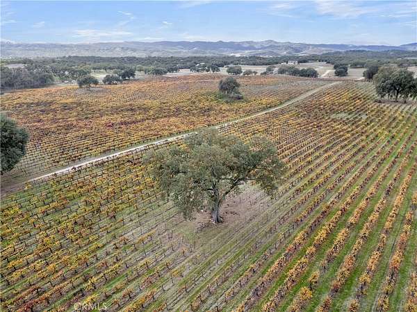 Set along the scenic corridor between Paso Robles and Lake San Antonio, this 92.9+- acre estate offers panoramic views, recreational appeal, and exceptional agricultural potential. The property features 87+- acres of producing vineyard (Cabernet Sauvignon & Malbec) supported by two wells, including an ag well with a history of producing 200 GPM. Rolling open land offers prime space for hunting, ranching, or future agricultural expansion, and the location sits directly in the path of long-term development growth. A fully fenced and gated property, it also includes a clean and desirable 1,123+- sq. ft. 2BD/1BA cottage overlooking the vineyard and hillsides. Ideally located just 30 minutes from downtown Paso Robles and 10 minutes from Highway 101, this estate delivers a rare blend of beauty, income potential, and versatility near Lake San Antonio.