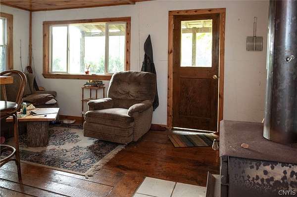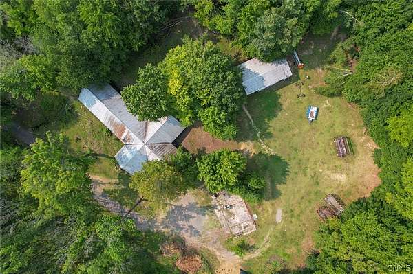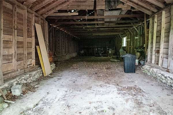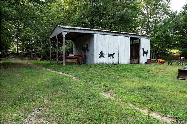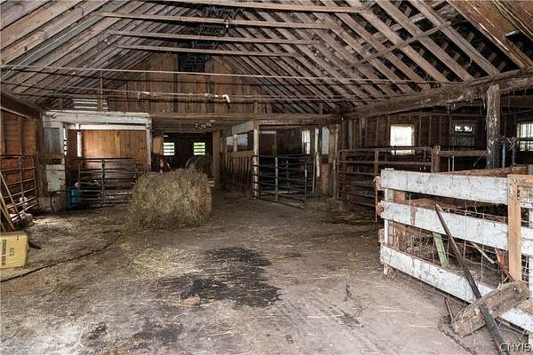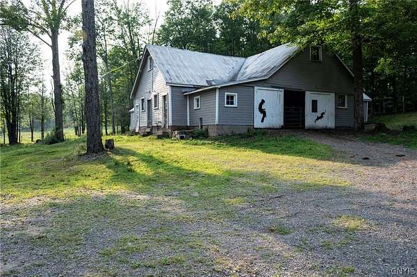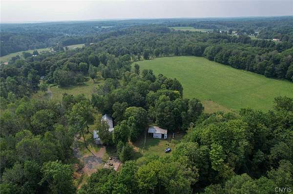 Welcome to your private 42-acre homestead at 5351 Lee Center Taberg Road. This rare find offers peaceful seclusion, agricultural potential, and country living at its finest. The 4-bedroom, 1-bath Cape Cod home features a spacious country kitchen, comfortable living room, and a solid layout perfect for family life or homestead living. With a little love, it will make someone the perfect home! The high-velocity spring-fed well and concrete septic system provide reliable utilities. Outdoors, the property is well-equipped for farming, livestock, or hobby agriculture with several fenced pastures, tillable acreage, and multiple outbuildings including a large barn, equipped with a tack room, stalls, utility room, tool shed, chicken house, and more. A poured concrete foundation remains where a garage once stood and is ready for a new build or workshop space. Two nice ponds on the property can provide recreational opportunities, livestock water, or just a peaceful setting. Also included is a cozy hunter's cabin tucked deeper into the acreage, complete with vaulted ceilings, a front and rear porch, and a rustic 1-bedroom layout that's perfect as a guest retreat or seasonal getaway. Whether you're dreaming of a small farm, a private hunting property, or a secluded country lifestyle, this versatile property offers endless opportunities. Conveniently located yet tucked away, it's a true rural gem.