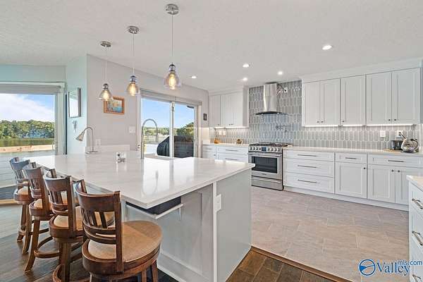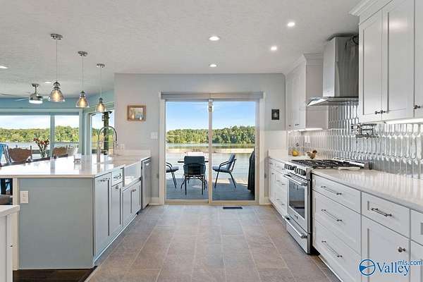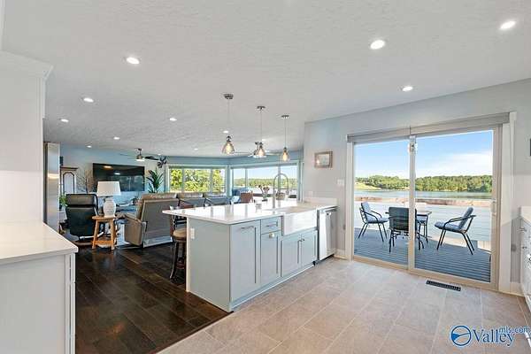RAINBOW CITY |WATERFRONT | BIG WATER | FLEX SPACE- Beautifully renovated 4BDRM/3BTH family home overlooking the main channel of the Coosa River w/ approx 1.6 acres/350 ft +/- of water frontage! Open family RM w/ views, leading to expansive deck w/ views! Gorgeous kitchen w/ massive work island/bkfst bar, ample cabinets, gas cooktop, tile backsplash & a view! Plush master suite w/ HIS & HER vanities & custom tile shower. Renovated 2nd main lvl bth.Home office. Finished basement w/ bonus rm/flex space, BDRM, bath, kitchen & fplc offering an ideal space for older children or mother in law! Pier w/ a view & cool wkshp/hang out area just off the shoreline. Water filtration system. 2 car garage!