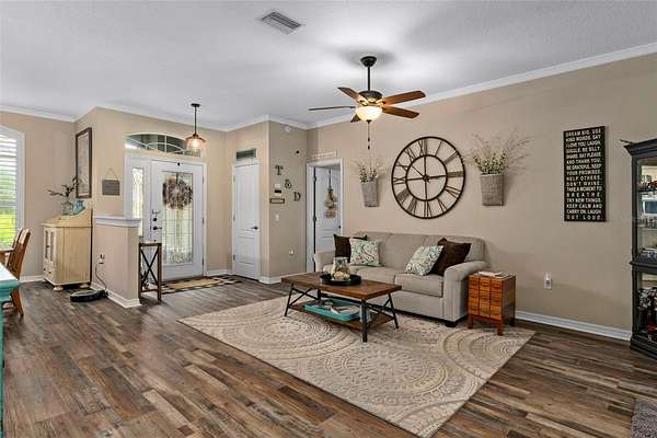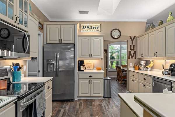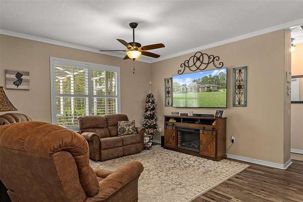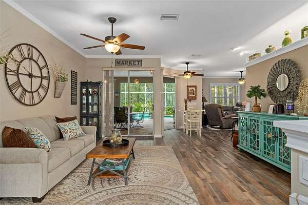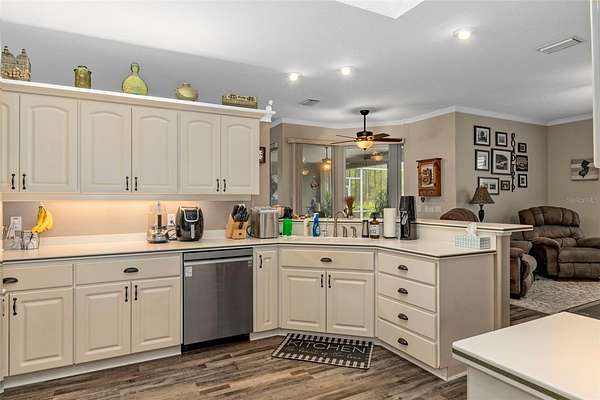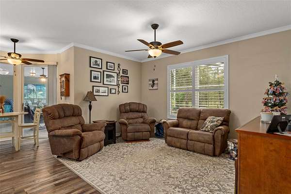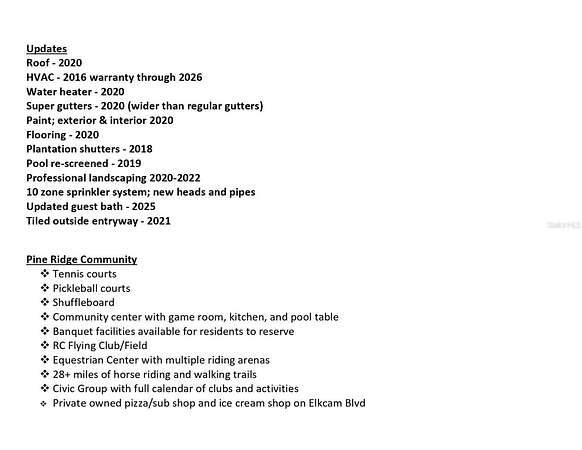 Incredible Value in Pine Ridge Estates! This stately pool home sits proudly on a corner lot with stunning curb appeal and unmatched privacy, via the adjacent 2.5+ acres of county-owned land. Step inside to find a beautifully updated interior featuring luxury vinyl plank flooring, stylish light fixtures, plantation shutters, and fresh paint inside and out. The kitchen is a dream with new appliances, pull-out cabinets, and a reverse osmosis water system. The floor plan offers 3 bedrooms and 2 full bathrooms giving you the perfect balance of comfort and function. The owner's suite boasts a tray ceiling, dual walk-in closets, and direct access to the heated saltwater pool. The second bath also connects to the pool patio for easy entertaining.Every detail has been thoughtfully upgraded: a brand-new roof, newly screened lanai, professional landscaping, and a 10-zone irrigation system with smart controller. Additional perks include gutters with environmental water barrels, hurricane shutters, and a storage shed. Living in the prestigious Pine Ridge Estates means enjoying a one-of-a-kind nature paradise with endless amenities--tennis, pickleball, shuffleboard, playground, dog parks, 28 miles of walking and horseback riding trails, a co-op horse barn, riding arenas, and even an RC flying field.This gem is move-in ready and offers the lifestyle you've been searching for. Don't be late to the party!