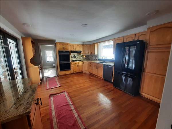 Set on a stunning 30-acre parcel, this move-in-ready 1,926 sq ft home blends timeless charm with modern upgrades. Offering 4 spacious bedrooms and 2 full baths, the home features a warm and inviting den with a fireplace, a formal dining room highlighted by a woodstove, and a bright eat-in kitchen designed for both everyday living and entertaining. The kitchen is equipped with quality KitchenAid cabinetry with soft-close drawers, brand-new 2025 double convection ovens, and a newer 2024 dishwasher. Recent mechanical updates provide peace of mind, including a new Rheem water heater (2025), high-efficiency furnace, and an updated 200-amp electrical panel. Outside, the expansive acreage offers a mix of partially wooded land and partially farmed fields with income potential. The property is well-suited for equestrian or hobby farm use, featuring two barns with three horse stalls and two corrals. A rare opportunity to enjoy space, functionality, and country living with modern conveniences-this property truly has it all.