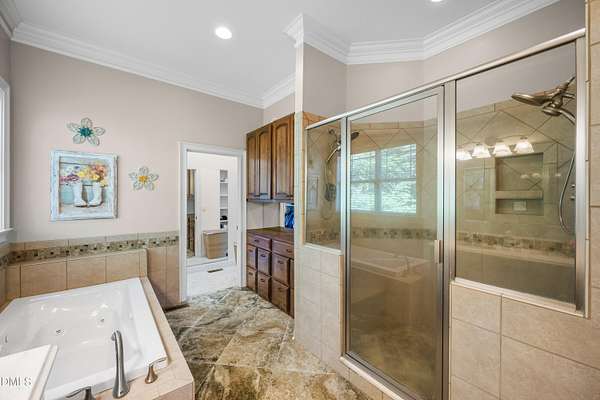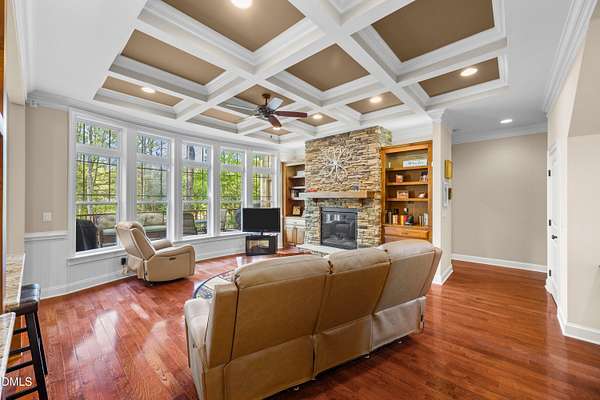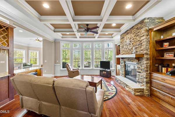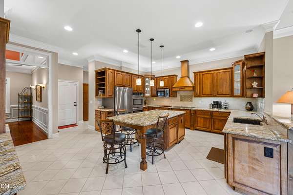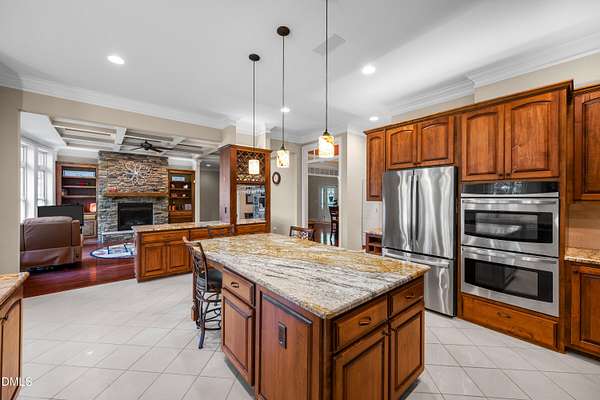 - Built-In Features, Ceiling Fan(s), Coffered Ceiling(s), Dining L, Eat-In Kitchen, Entrance Foyer, High Ceilings, Kitchen Island, Pantry, Separate Shower, Smooth Ceilings, Walk-In Closet(s), Walk-In Shower