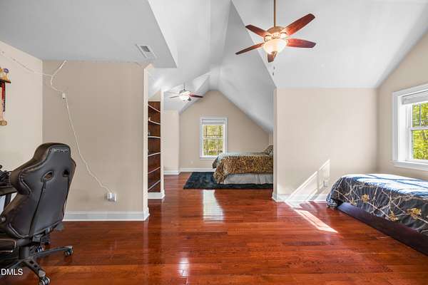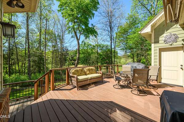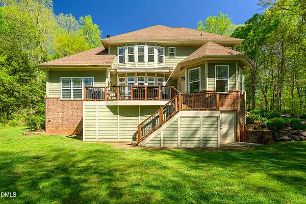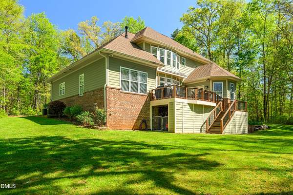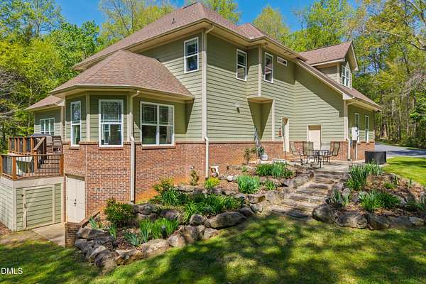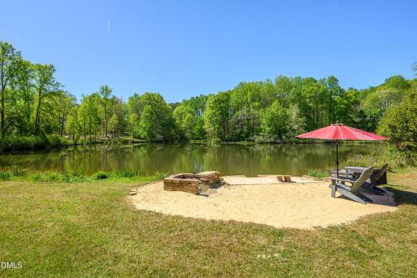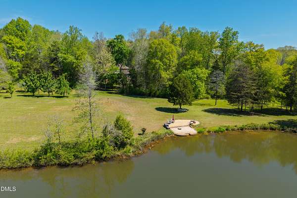 Experience waterfront living in this stunning, Green-certified custom home set on 12+ gently rolling acres with a private, stocked pond and a small sandy beach. Take a leisurely walk from the backyard to the Haw River. This property includes approximately 400 ft of river frontage & beautiful trails through the woods. This property is an outdoor enthusiast's dream! The grounds feature a small orchard of pear, apple, peach and apricot, fig trees, grapes and blueberry plannts! Don't miss the multiple perennial flower beds, and abundant sunny space ideal for a large garden, chickens or goats. Enjoy peaceful water views from the deck overlooking the picturesque landscape. Inside, the home offers a first-floor primary suite, a huge gourmet kitchen, and an exceptional walk-in pantry/laundry room. Eco-friendly construction, generous outdoor amenities and a serene rural setting--yet only 20 minutes to Chapel Hill or Pittsboro--Take advantage of this a rare opportunity!