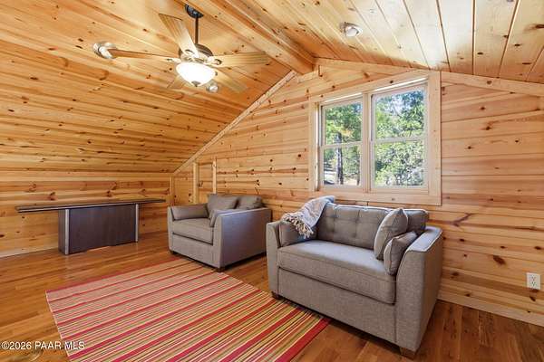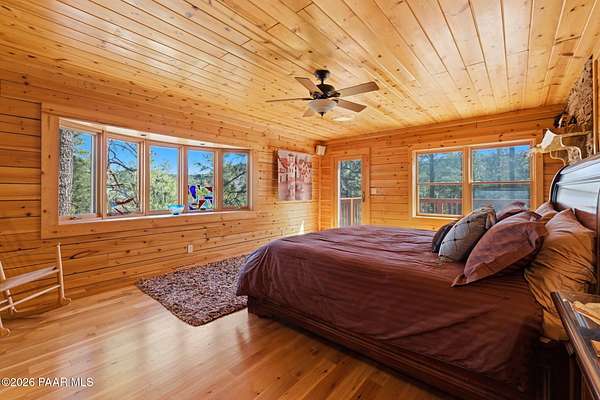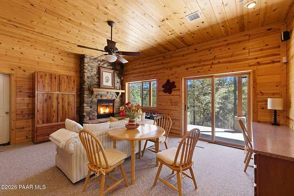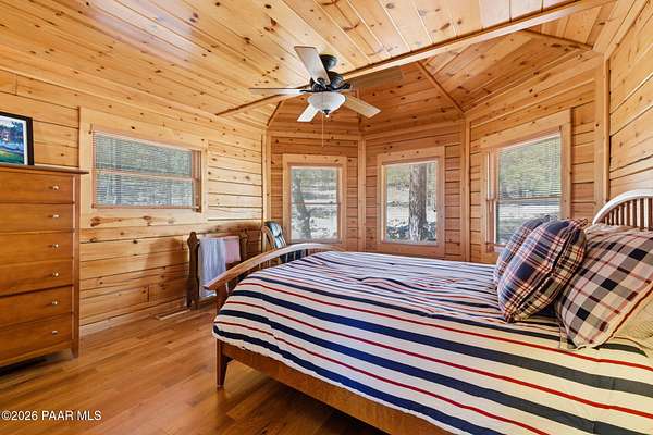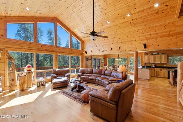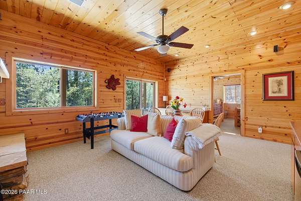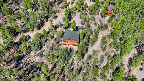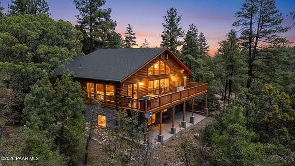Escape to the cool pines of the historic Walker District--just 20 minutes to downtown Prescott and 10 minutes to Costco--where privacy, serenity, and mountain living come together on two pristine acres.Nestled in the heart of the Bradshaw Mountains within the legendary Walker District, this custom-built log cabin sold FULLY FURNISHED offers over 3,300 square feet of authentic mountain charm. Featuring 4 bedrooms and 3 bathrooms, every window captures breathtaking views of towering Ponderosa pines and surrounding forest, creating a peaceful retreat that feels worlds away from the everyday.Built as a cherished second home by the original owner, this all-wood log residence has been gently lived in during summer months and meticulously maintained. Recent updates include a new roof, freshly refinished deck, and newly stained exterior--ensuring turnkey readiness while preserving its rustic elegance. Inside, warm wood log walls and wood panels create an inviting lodge-style ambiance. A spacious loft overlooks the great room and frames stunning treetop views--perfect as a reading nook, office, or additional gathering space.The expansive two-acre parcel provides ample room to host family and friends while maintaining thoughtful defensible space around the home. Trees are professionally evaluated every few years for health and safety, offering peace of mind in this forested setting.Located along private Blue Jay Road, a gravel lane just off Walker Road, this home enjoys the benefit of large acreage parcels throughout the neighborhood--each two acres or more--providing exceptional privacy while fostering a friendly and supportive community. Neighbors work together to maintain the road and preserve the area's natural beauty.The Walker area, originally established in 1863 by Captain Joseph R. Walker, is rich in Arizona mining history and outdoor recreation. Surrounded by the Prescott National Forest and near Lynx Lake, residents enjoy hiking, birding, boating, and fishing. At approximately 6,500 feet in elevation, Walker offers cooler summer temperatures than downtown Prescott and the magical experience of occasional winter snowfall.The active community, supported by the Walker Community Action Alliance (WCAA), promotes Firewise initiatives, community events, pancake breakfasts, fish fries, and bingo nights--bringing neighbors together while protecting this special mountain environment.Perfect as a full-time residence or an ideal second home for Phoenix and Scottsdale buyers seeking a private mountain escape just two hours from Phoenix Sky Harbor Airport, this property delivers the simple luxury of fresh mountain air, star-filled skies, and the timeless beauty of Arizona's high country.Experience the lifestyle. Embrace the quiet. Come home to Walker and step into this fully furnished move in ready log cabin. A shed is on the lower portion of the property as you drive around to the garage area.