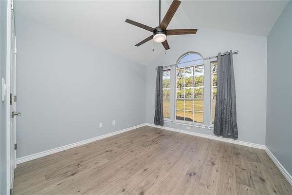 Inside, the home opens up with vaulted ceilings in the living and dining areas, creating a light, airy atmosphere anchored by a wood-burning fireplace that brings warmth and character on cool East Texas nights. The layout flows comfortably, offering spaces that feel welcoming without being overdone.
