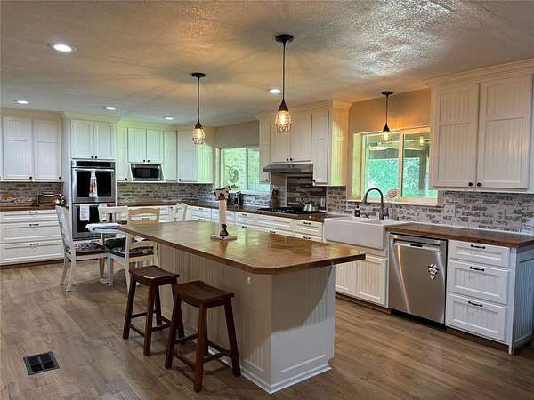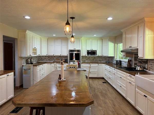 This home features 4 bedrooms, 2 bathrooms. New oven stove, dishwasher, and floors! Updated kitchen with custom cabinets. 6x8 pantry, large enough for an additional freezer and refrigerator. 11x12 Laundry room has hook ups for 2 Washing Machines and 2 Dryers, space for additional refrigerator and freezer.