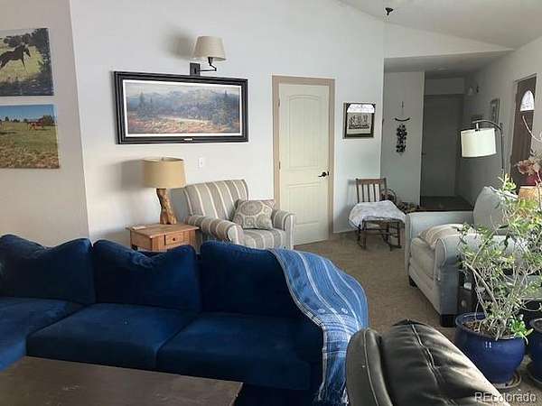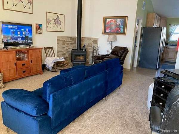 The custom home is “right-sized” for a couple or small family. Large open rooms with vaulted or elevated ceilings and lots of windows makes this home bright and homey. Windows open up to the magnificent views of the Sangre de Cristo Mountains.