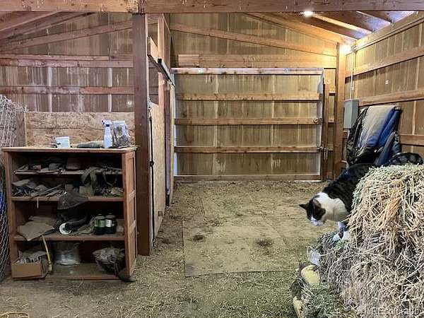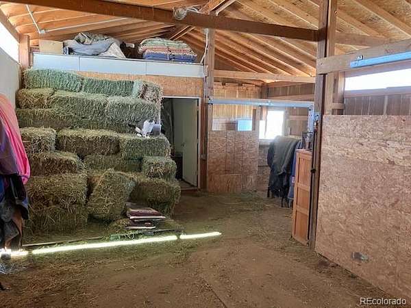 A large free-space haybarn allows for both hay storage and a shelter for the horses. There is also a two-stall barn (could easily convert to three stalls) with 12’ aisle and insulated tack room, and loft. The horse runs and corrals are constructed with safe, metal panels and there is a large outdoor riding arena with a good sand base.