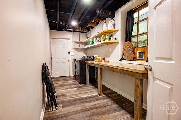 Escape to your own private wooded retreat, perfectly positioned just two miles from the heart of Loganville's shopping and dining. This exceptional property offers the tranquility of acreage without sacrificing easy access to everything you need. This home is a rare find for those seeking private and flexible living. The home features three distinct living areas, each designed with its own private entrance and a full, updated kitchen. The 5 bedrooms and 4.5 bathrooms mean there's absolutely no shortage of space; everyone gets their own little slice of heaven! Fully renovated in 2022, the home features high-end finishes throughout, including quartz countertops and a mix of beautiful hardwood, slate, tile, and LVT flooring. Enjoy your mornings in the sunroom or on the deck overlooking your secluded backyard, a peaceful space where you can relax in complete privacy. Updated HVAC systems on both levels ensure year-round comfort. Spend your summer days relaxing by the 36-foot saltwater pool (fully fenced for safety) or utilize the additional fenced acres for your own mini hobby farm. A circular driveway provides plenty of parking. For projects and storage, you'll find a workshop with extra basement storage, multiple detached sheds, and a comfortable, insulated 10x12 outbuilding. Combining a private setting with convenient proximity to local amenities, this property is a truly unique opportunity. The basement has been waterproofed by Trotter Company and the lifetime warranty transfers to the buyer. Schedule your private showing today!