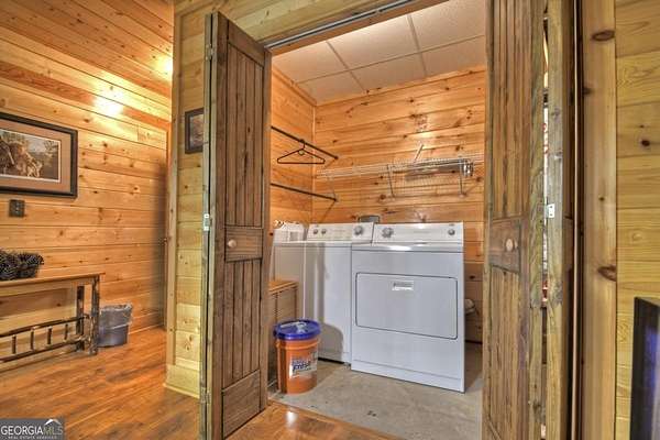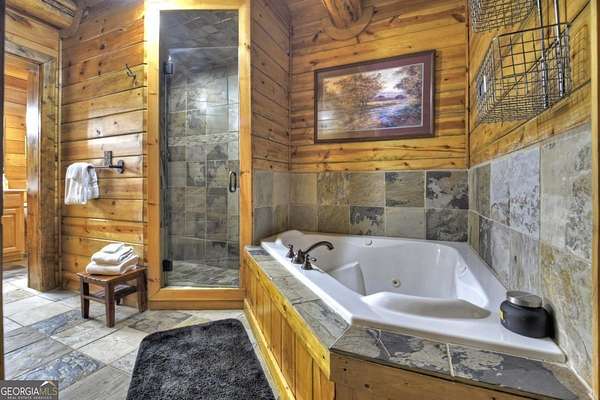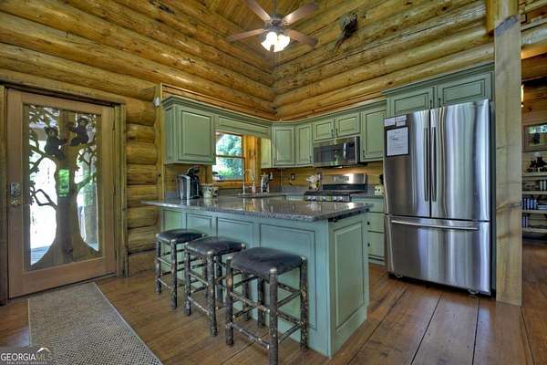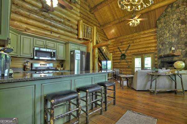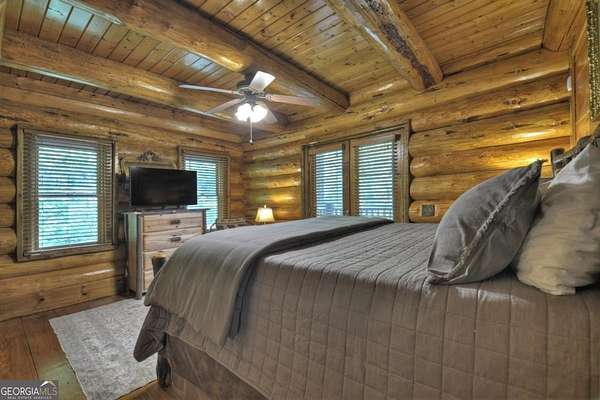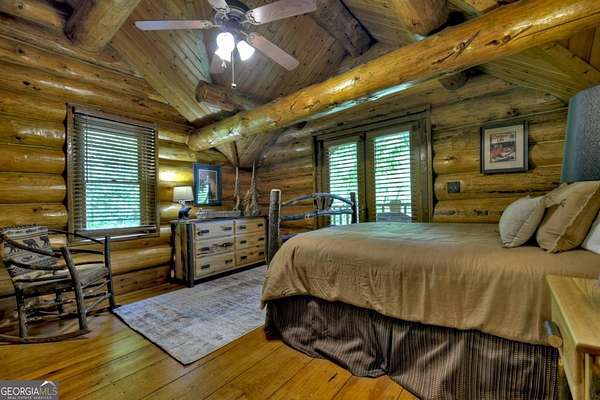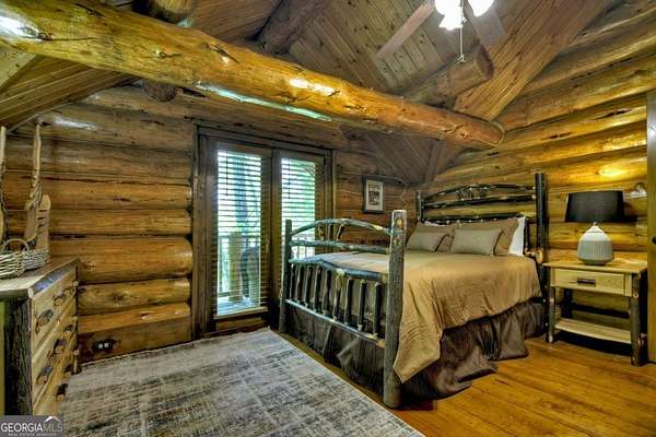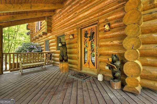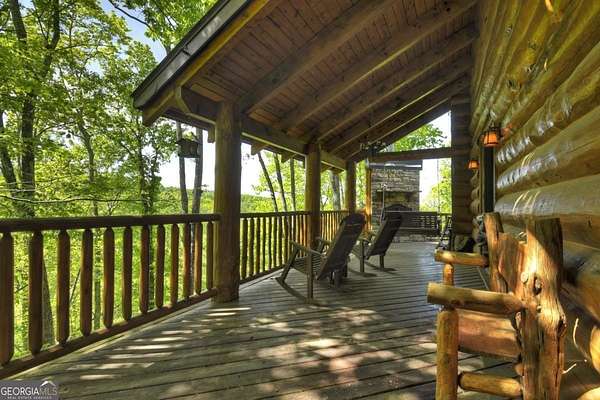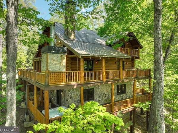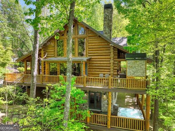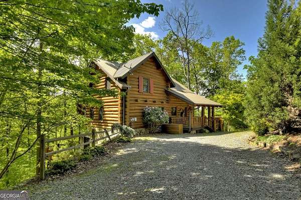 Nestled in the scenic embrace of Blue Ridge, this stunning 4 bedroom/3.5 bath "authentic" lodge style log cabin offers a harmonious blend of tranquility and adventure...Constructed from robust British Columbian logs, the cottage radiates a charming, timeless appeal, complemented by rustic elegance...the grandeur of the open-concept great room captivates you with its soaring vaulted ceilings and expansive windows which bathe the area in natural light, beautifully showcasing the gorgeous mountain & lake views... At the heart of this inviting room, a stone fireplace provides a comforting presence, perfect for those crisp mountain evenings...kitchen is a culinary dream, equipped with modern appliances and a spacious island that invites intimate dinner preparations with room to entertain, primary bedroom is a secluded sanctuary with direct outdoor access, encouraging connection with the peaceful environs, The adjoining bathroom features a deluxe soaking tub and separate walk-in shower, creating a spa-like atmosphere for ultimate relaxation...Outside, a generously sized porch features a hot tub and a cozy fireside, ideal for marshmallow roasting and stargazing amid the Aska Adventure Area...just a few short minutes from hiking and biking trails, historic downtown Blue Ridge, the Lake & Toccoa River...Situated in a charming, paved & gated community, this cabin is not only a serene retreat but also a proven performer in the short-term rental market. Whether seeking a permanent home, a weekend getaway, or a smart investment, this property offers an idyllic setting for both relaxation and exploration...turn key and move in ready with tasteful furnishings & decor...a true dream!