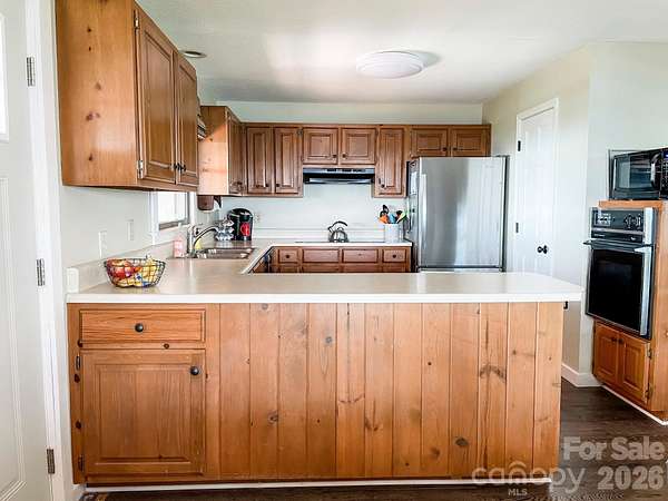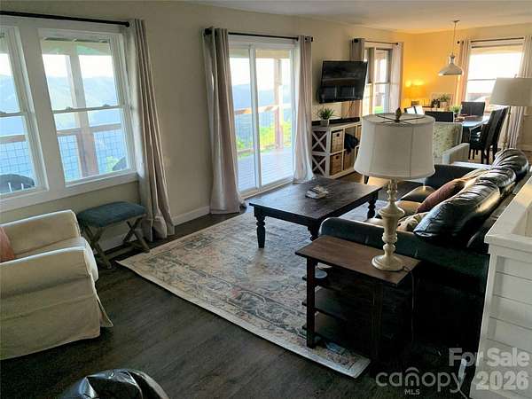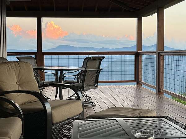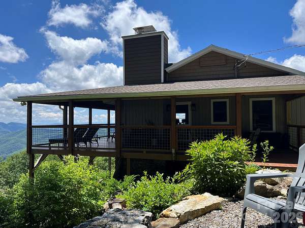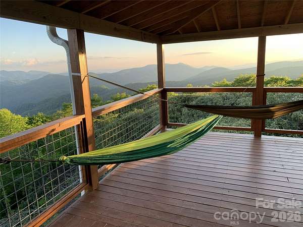MILLION DOLLAR VIEWS & MILLION DOLLAR LOCATION! Pictures don't do justice to the breathtaking 180+ degree views; some of the best in the area. Ten 6,000 foot peaks are visible, including Clingmans Dome, Waterrock Knob, & Mt. Pisgah. Enjoy sunrises, all day sun, & sunsets over the Great Smoky Mountains National Park (GSMNP) from the desirable southern/southwest facing layout. Literally above the clouds at 5,540 feet in elevation, this property offers unmatched seclusion, layout. Seclusion: the property, comprises of three lots; that are the last lots at the top of the development known as Sheepback Mountain. One half of the property is surrounded by thousands of acres of North Carolina Forestry Service land, which directly abuts the GSMNP, ensuring that this property will forever maintain its unique solitude & mountain charm. Layout: even though at the top of a mountain, the topography of the property offers extraordinarily flat & gentle rolling land for buyers eager to build a family compound, additional home, entertaining space, or gardens. There is an upper driveway/parking area/entertainment area & a lower driveway connecting to the garage, offering ample parking (a rarity with mountain homes) & easy entry to home. The home sits on a 5-acre lot. The best lot, however, is a separate 5-acre lot, with gentle rolling land & an even more impressive view. Both of the foregoing lots sit above the third 3.8-acre lot, ensuring a perpetual unrestricted view. Land at this elevation simply does not get any better! Access: Sheepback Mountain is private electronic gated community with exceptionally well-maintained private roads, accessible to all forms of vehicles. Lands End Lane also has its own private gate, beyond which only three homes are located. Even though private, the home is only 20 mins from Maggie Valley, 25 mins from Waynesville, 40 minutes from Cherokee & Harrah's Casino, & 1 hr. from Ashville. The home itself offers recently remodeled main level living with a three-sided access to covered decks totaling 1,136 sf. The home is a 2 bedroom with 2 additional flex rooms, 3 bath, 2,168 sq. ft. (1,224 sq. ft. up; 944 sq. ft. down) home with a one car attached garage. There are two separate Jotal wood stoves; one up & one down. The home does not need air conditioning; as the cool mountain air is all you need all summer long. Sellers are negotiable to selling fully furnished (with the exception of a few seller personal items). For nature lovers/hikers; in addition to the directly accessible North Carolina land, which boasts rarely used hiking trails (e.g. Little Bald Knob) & high elevation ponds, the GSMNP is only a one-mile hike from the front porch & Hemphill Bald (one of the greatest hikes in the GSMNP) is only 2.5 miles. Sheepback mountain has its own private GSMNP access & a beautiful meadow full of wild blueberries & blackberries where you can park. The local elk herds are frequently nibbling on the wild blueberries & blackberries on the property. You will routinely see multiple elk in the area. In addition, various wildlife, & hummingbirds make this paradise home, & you'll certainly get visits from them throughout the season. For the homebodies, this home has outstanding cell-phone reception & available highspeed internet. There are two separate outdoor furniture suites, one on the front porch and one on the back porch, along with an outdoor table, a bar top, & ample outdoor seating at two separate fire pits.