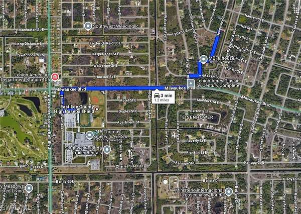Colonial Blvd and FL-82 E to Parkdale Blvd in Lehigh Acres Continue on Parkdale Blvd to Milwaukee Blvd Turn right onto Milwaukee Blvd Drive to Osage Ave S Turn left onto McArthur Blvd Turn right at the 1st cross street onto Macy St E Turn left onto Cottonwood Ave S Turn right onto Osage Ave S ? Destination will be on the left