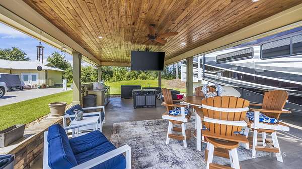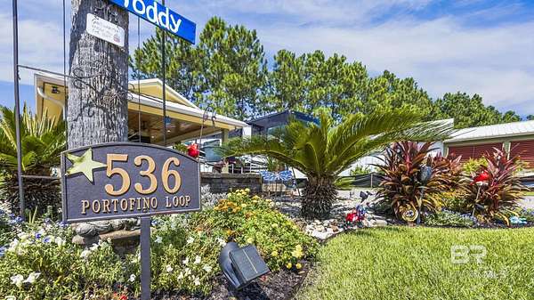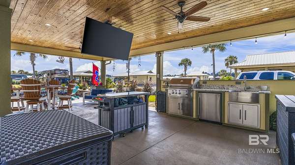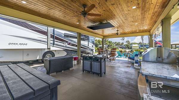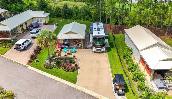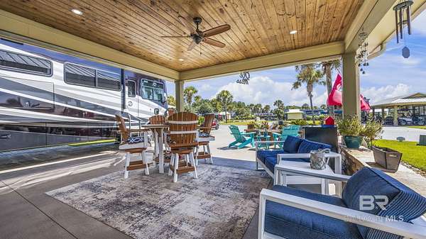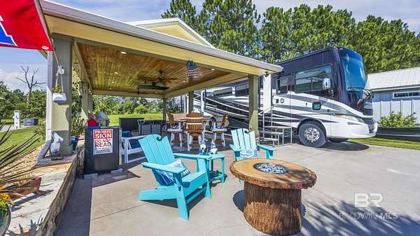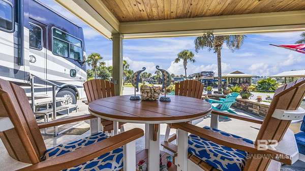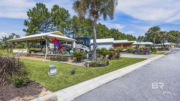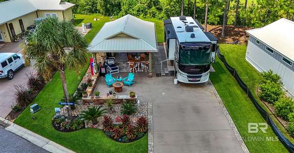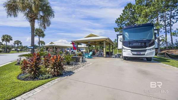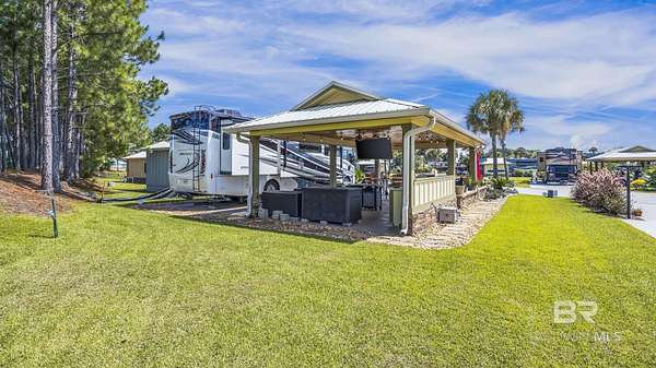 23Welcome to your next adventure at Bella Terra--an exclusive luxury resort for Class A and Super C motorcoaches located near the stunning Gulf Coast. This well-maintained, northeast-facing back-in site features a 70' long painted concrete RV pad surrounded by beautifully manicured, lush green grass. The oversized 16' x 30' custom pavilion is a true standout, boasting a tongue-and-groove wood ceiling, two ceiling fans, and a 70" ceiling mounted TV on a remote-controlled swivel. Entertain with ease using the natural gas grill and fire pit, stainless steel farmhouse sink with hot water, and under-counter refrigerator. Thoughtfully designed for comfort and functionality, the pavilion includes extra GFCI outlets, can lights, flood lights, and an additional water spigot. A dedicated 16' x 12' fire pit area and separate golf cart parking pad further enhance outdoor living. This site is build-ready, with room for a casita and/or golf cart garage and includes a full hookup pedestal. Custom stacked stone trim, solar lighting, and exceptional landscaping create a unique and luxurious setting that stands out among other sites at Bella Terra. Ideally situated within walking distance to the Clubhouse and Pool--paradise is calling!Bella Terra is conveniently located 10 minutes from sugar white beaches and is located in close proximity to restaurants, entertainment and OWA. Resort amenities include a 6,000 sq ft clubhouse, zero entry infinity pool, hot tub, large fitness center, wet/dry sauna, movie theater room, stocked lake, dog parks/dog wash, and guest/owner activities. Low COA fees. Buyer to verify all information during due diligence.