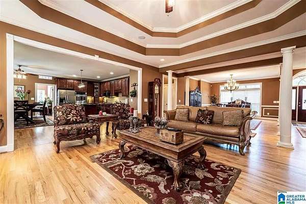 The Grand Estate at Rock Mountain Lake: Discover a residence where grandeur meets tranquility. Tucked away on a sprawling 3.65-acre wooded estate, this custom-built fortress of a home offers a level of space and privacy rarely found with a staggering 10,000 square feet under roof. The main level is an entertainer's dream, flowing effortlessly from the formal dining areas to a sun-drenched living room crowned with double-tray ceilings and flanked by stately columns. Hardwood floors guide you to the heart of the home: a chef's kitchen equipped with granite countertops, stainless steel double ovens, and a center island designed for gathering. What sets this estate apart is the sheer volume of livable space. Whether you envision a multi-generational sanctuary, a massive home theater, or a private recreation hall, this home can accommodate it all.
