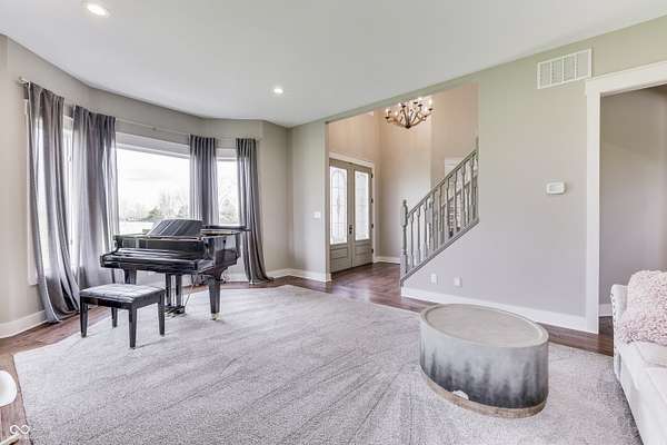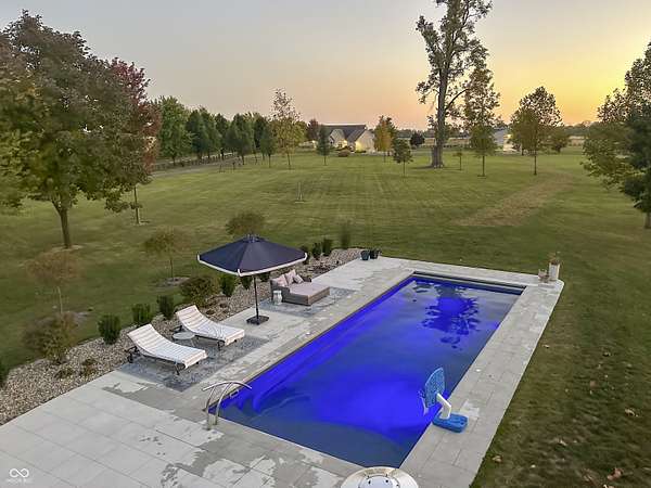 Beautiful 5 BR, 4 BA home in gated countryside property. Beautiful view of pond and pastures. Enter into this home through the 2 story entry to see what unfolds. This home is expansive and bodes of a kitchen with built in sub zero refrigerator, granite counter tops, island/breakfast bar with added cabinetry and gas stove top. Trash compactor and double oven a plus for this lg. busy entertaining home. View from kitchen to back pond and inground pool, firepit, covered porch and pasture. 2 story Great Room with Auto Shades, FP and back stairwell to 2nd level. Master Bedroom and Master Bath on Main, as well as Half Bath, Living Room and Office with built in book shelves. 2nd Level with Guest Room with balcony which overlooks the heated pool. Guest room bodes of sitting room, Full Bath and Lg. closet. Laundry Room on 2nd level as well as 3 other Bedrooms. All Bedrooms on 2nd level have their own bathrooms. 3 car garage with service door and keyless entry. Geothermal Heat for this home! Propane tank owned. All blinds stay! Speakers throughout home. You will not be disappointed in this beautiful home! Don't let this one slip away!
