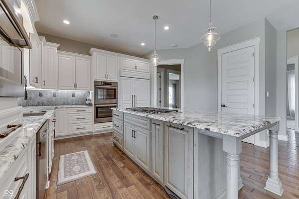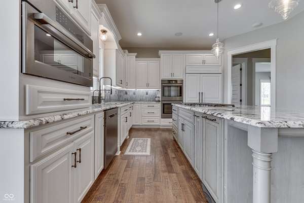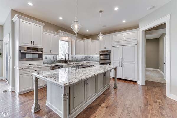 - Cooktop, Dishwasher, Double Oven, Garbage Disposer, Gas Cooktop, Microwave, Refrigerator, Softener Water, Trash Compactor, Washer