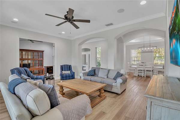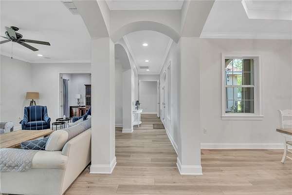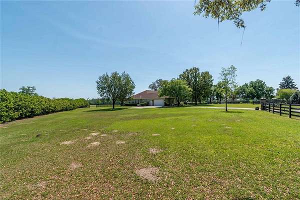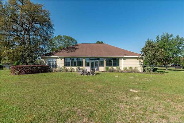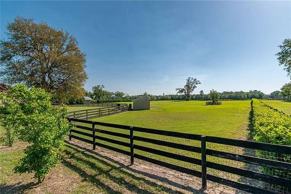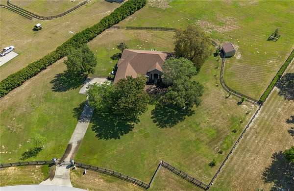 Discover this beautifully curated, turnkey 3.49-acre estate in the gated Estates at Pleasant Hill. Just 15 minutes from the World Equestrian Center and 5 miles to HITS, it's an ideal option for those wanting to experience the charm of Horse Country without the demands of full-sized farm management. Tucked away on a quiet dead-end street, the property welcomes you with manicured landscaping and a covered front entry, leading into a custom ranch-style home thoughtfully designed for comfort and style. The split-bedroom floor plan features 3 bedrooms and 3 full baths, offering both privacy and functionality. Inside, crown molding, arched doorways, decorative recesses, and soaring ceilings are complemented by an abundance of natural light. The spacious family room opens through French doors to an insulated, air-conditioned Florida room--an ideal space to relax and take in views of the property year-round. The kitchen is a standout, with solid cherry cabinetry, top-tier KitchenAid appliances, a large island with bar seating, breakfast nook, and a walk-in pantry. The primary suite is a private retreat with its own Florida room access, while the additional bedrooms and baths are generously sized and tastefully finished. Step outside to cleared, level land fully enclosed by four-board fencing with no-climb wire. A grass paddock with an electric-equipped run-in shed provides the option to have a horse if desired, and the 1.5-mile, 60-foot-wide community bridle path offers scenic space to ride right at home. Additional highlights include designer furnishings throughout, a 24kW Generac whole-house generator with 500-gallon propane tank, water softener, and AC units with anti-allergen micro lights. Fruit trees--including peach, lime, fig, banana--and berry shrubs add a flavorful touch to this peaceful retreat. This move-in-ready estate delivers upscale rural living in one of the area's most desirable equestrian communities. Fully furnished with Ethan Allen and Pottery Barn furniture.