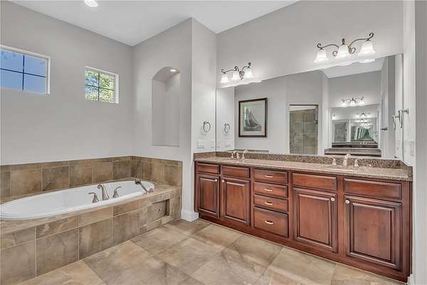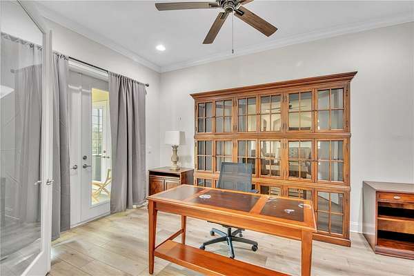 - Ceiling Fans(s), Crown Molding, Eat-In Kitchen, High Ceilings, Primary Bedroom Main Floor, Solid Wood Cabinets, Split Bedroom, Thermostat, Tray Ceiling(s), Walk-In Closet(s), Window Treatments