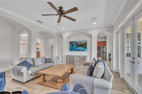 Discover this beautifully curated, turnkey 3.49-acre estate in the gated Estates at Pleasant Hill. Just 15 minutes from the World Equestrian Center and 5 miles to HITS, it's an ideal option for those wanting to experience the charm of Horse Country without the demands of full-sized farm management. Tucked away on a quiet dead-end street, the property welcomes you with manicured landscaping and a covered front entry, leading into a custom ranch-style home thoughtfully designed for comfort and style. The split-bedroom floor plan features 3 bedrooms and 3 full baths, offering both privacy and functionality. Inside, crown molding, arched doorways, decorative recesses, and soaring ceilings are complemented by an abundance of natural light. The spacious family room opens through French doors to an insulated, air-conditioned Florida room--an ideal space to relax and take in views of the property year-round. The kitchen is a standout, with solid cherry cabinetry, top-tier KitchenAid appliances, a large island with bar seating, breakfast nook, and a walk-in pantry. The primary suite is a private retreat with its own Florida room access, while the additional bedrooms and baths are generously sized and tastefully finished. Step outside to cleared, level land fully enclosed by four-board fencing with no-climb wire. A grass paddock with an electric-equipped run-in shed provides the option to have a horse if desired, and the 1.5-mile, 60-foot-wide community bridle path offers scenic space to ride right at home. Additional highlights include designer furnishings throughout, a 24kW Generac whole-house generator with 500-gallon propane tank, water softener, and AC units with anti-allergen micro lights. Fruit trees--including peach, lime, fig, banana--and berry shrubs add a flavorful touch to this peaceful retreat. This move-in-ready estate delivers upscale rural living in one of the area's most desirable equestrian communities. Fully furnished with Ethan Allen and Pottery Barn furniture. Dogs accepted with landlord approval and non-refundable pet deposit. First, last, and security deposit required before move-in.