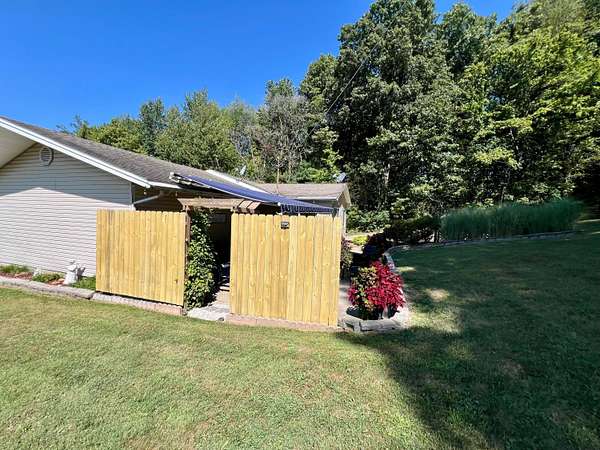NEW PRICE AND IMMEDIATE POSSESSION! This beautifully updated ranch is perfectly nestled in a peaceful, rural setting. It has woods on the side and rear, plus beautiful views from the new covered composite front porch. This home is located along a peaceful country road, but just minutes from Lancaster. This turn key home, features a warm and welcoming living space with a wood burning painted brick fireplace. With 1,420 sq ft on the main floor, plus a 600 sq ft finished basement, there is plenty of space to relax, create and gather. Basement was just remodeled in 2023 and could be a possible 4th bedroom. Hobbyists will love the additional work space available in the unfinished area of the basement. The home has 3 bedrooms and 2 full bathrooms, Including a spacious owner's en-suite addition with a walk-in shower. The second full bath has a brand new bathtub with surround shower. Inside and out-this home has been lovingly cared for with pride. Over the last decade, the Sellers have invested in major updates. See attached list of all updates and improvements. The bright beautiful kitchen has white cabinets and modern stainless steel appliances. Step outside of the Dining Room to the expansive aggregate patio, complete with a Sunsetter Shade retractable awning. There are gorgeous perrineals and peaceful natural views from every angle. The 2 acre lot provides endless possibilities, including a space prepped for pool, outdoor kitchen or gazebo. Expansive green space surrounds the home creating opportunity for gardening, play or unwinding in nature. A perfect retreat for sipping coffee or hosting a fall gathering. A 12x12 storage shed adds even more functionality. Don't miss this Incredible opportunity to get a beautifully updated ranch on 2 acres. Located in a peaceful, rural setting but just minutes from local amenities and the bypass! See attached list of all updates and improvements!