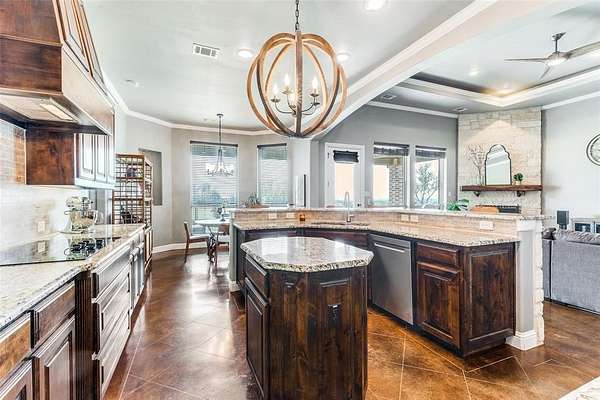 - Built-In Features, Cable TV Available, Chandelier, Decorative Lighting, Double Vanity, Eat-In Kitchen, Flat Screen Wiring, Granite Counters, High Speed Internet Available, Kitchen Island, Natural Woodwork, Open Floorplan, Pantry, Walk-In Closet(s)