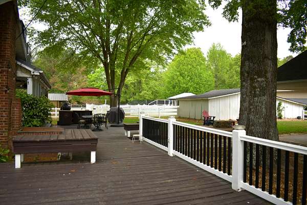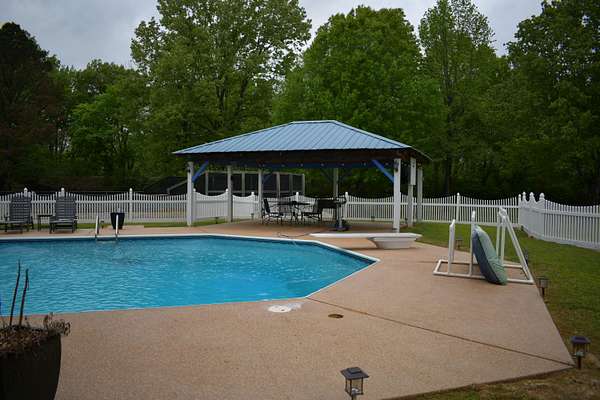 Experience the enchanting blend of country living and city convenience with this remarkable property! Spanning over 5.6+/- fenced acres, it includes a triple garage, a tennis court, a refreshing pool with a charming gazebo, a barn, and two spacious workshops. The wrap-around deck, complete with an outdoor kitchen, invites you to relax and entertain in style. Step inside this inviting home, where you'll discover 4 bedrooms and 2 bathrooms across approximately 3206 sq. feet of thoughtfully designed space. The gourmet kitchen is a chef's dream, featuring a gas stove, oven, and a delightful eat-at bar, complemented by a large pantry for all your culinary needs. Gather around the elegant dining area, adorned with a cozy fireplace, or unwind in the formal living room and den, perfect for