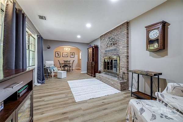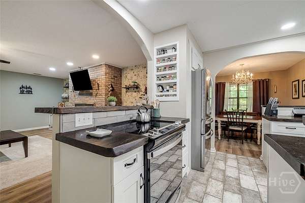 This Completely Renovated 3BD/3BA Home w/ Oversized 2 Car Garage Includes Just over 3 Acres of Private Land surrounded by Mature Trees, Providing a Peaceful Retreat just 15 minutes from Hinesville! With 2,374 SQFT this home blends classic charm with Modern Comfort. All-new Appliances and LVP flooring throughout, Fully Renovated Bathrooms and Details like Exposed Brick accents and Arched Doorways Add Unique Character. The Heart of the home is the Open-Concept Kitchen, with stunning Custom Live-Edge countertops, White Shaker Cabinetry, and a Cozy Breakfast Nook with a Bay Window that frames views of the expansive backyard. Two inviting living areas offer flexibility-one with built-in bookcases flanking a double-sided fireplace. The spacious main suite is complete with a custom-built double vanity, separate vanity table, and separate wet room. Dedicated Laundry Room with Built-In Storage! Just 1 1/2 Hrs From Tybee & St. Simon's Island! Schedule a Showing Today!