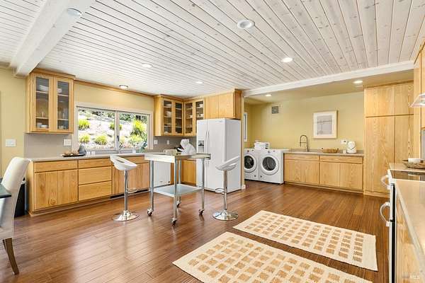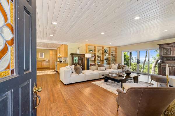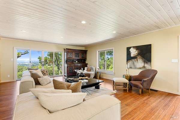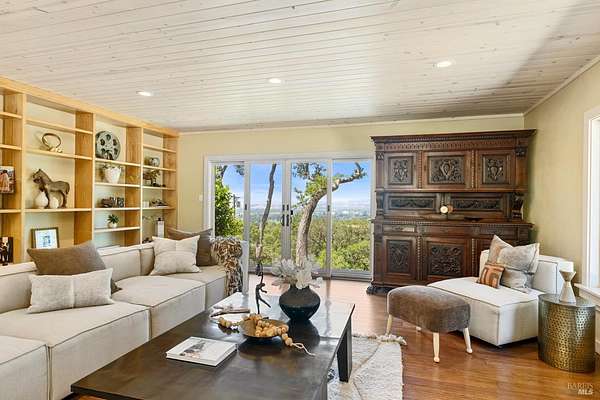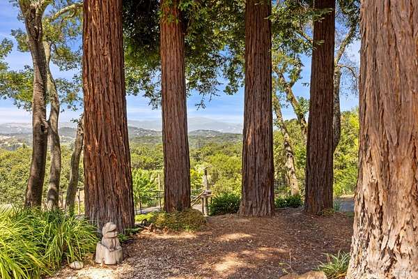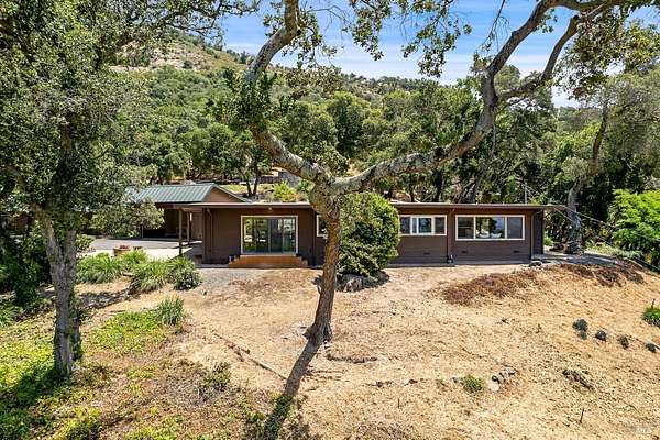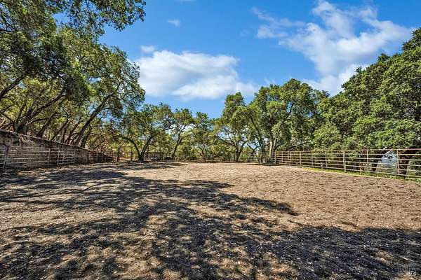 Such a rare find. 10.88 Acres tucked at the end of a private lane at the base of the Eastern hills. Views overlooking the valley all the way to the bay, and yet just minutes to downtown Napa. The spacious front courtyard with a shady grove of redwoods greet you and you enter the lovely single level home with a completely open & spacious floor plan. Lots of windows and sliding doors invite you to the outside spaces. Sliding glass doors lead out to the deck and the beautiful views over the valley and on the other side of the great room sliding glass doors lead from the dining area out to sheltered backyard. Perfect for an evening around the firepit. The home offers sleek wood floors, and tongue and groove ceiling. Large open kitchen with Corian counters, & custom cabinets. The primary suite has a spacious bath, walk-in closet and sliding door to the outside. The property offers a possible guest unit, huge shop with 12ft roll-up door for RV access, tack & hay barns, paddocks and an 80'X120' riding arena. An upper trail leads to amazing views from the top of the property. Special properties like this do not come along very often.
