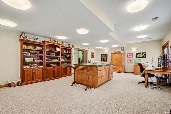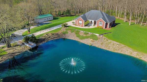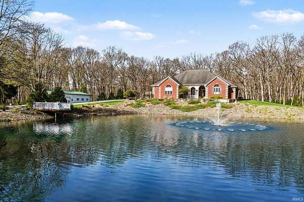 Tucked away on a stunning 20-acre parcel, this impeccably maintained 3-bedroom, 2.5-bath walk-out ranch offers a rare blend of comfort, craftsmanship, and privacy. The home features soaring 10-foot ceilings and a warm, inviting living space anchored by a marble-front gas fireplace, Well maintained ceramic tile and carpeted floors that have never had shoes worn on them. The gourmet-style eat-in kitchen is designed for both everyday living and entertaining, boasting granite countertops, a large island with a vegetable sink, a triple sink setup, a conventional oven, and an additional 30" oven and built in microwave for added convenience. Enjoy seamless indoor-outdoor living with a brand-new, expansive Trex upper deck, a nearly half-acre pond complete with a fountain, a brand-new Trex pier, and a built-in bench—creating a peaceful waterfront retreat right in your own yard. The spacious primary suite offers a private en-suite retreat, complete with a large jacuzzi soaker tub. Downstairs, the walk-out basement features 9-foot ceilings, is plumbed for an additional bathroom, and includes abundant storage plus a versatile bonus room ideal for a home gym, hobby space, or office, and Double French doors leading to the lower level patio. Car enthusiasts and hobbyists will appreciate the heated, oversized 3-car attached garage with 14-foot ceilings and convenient basement access. The property also includes a substantial 30x56 pole barn with a metal roof and heat—perfect for equipment, storage, or workspace needs. Additional highlights include a whole-house generator for peace of mind and the tranquility of 20 acres of land, offering endless possibilities. This one-of-a-kind property combines luxury living with rural charm—immaculately cared for and ready to impress.
