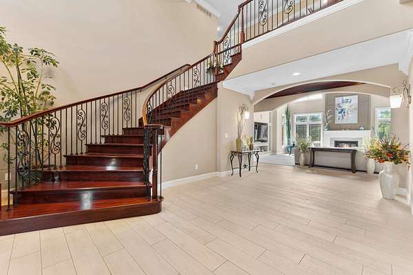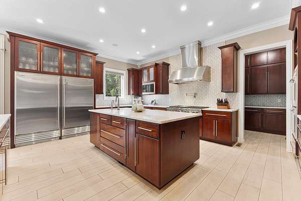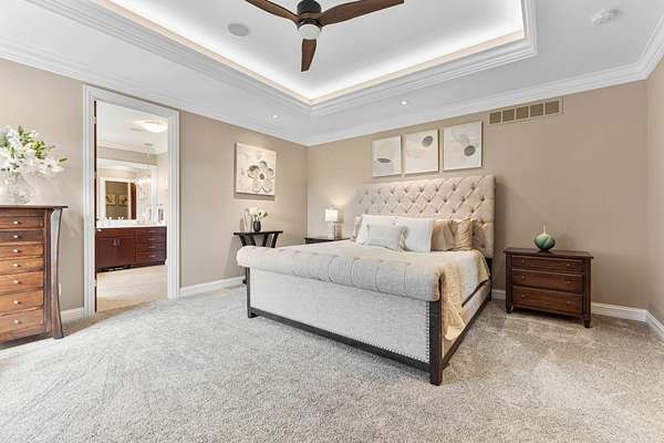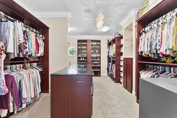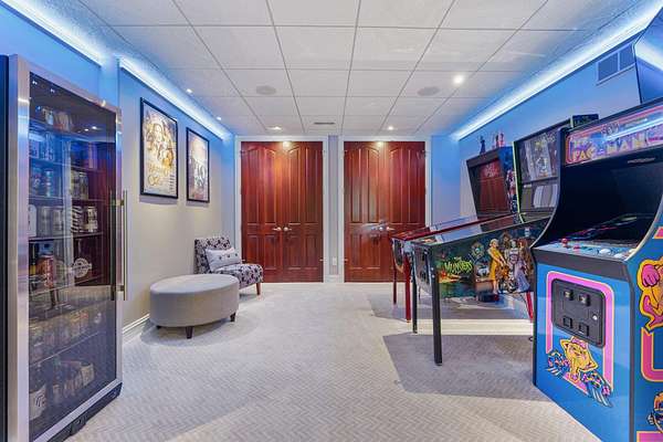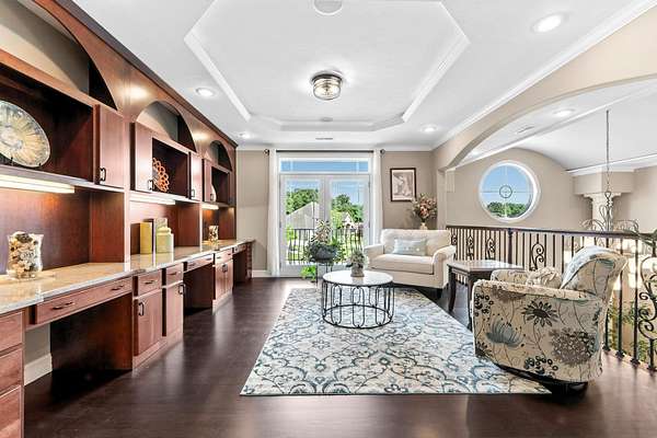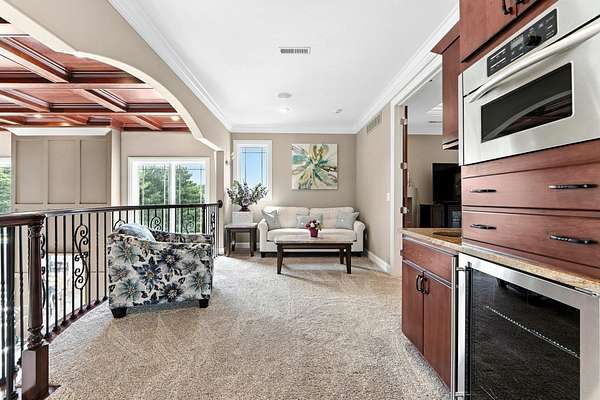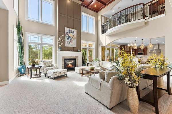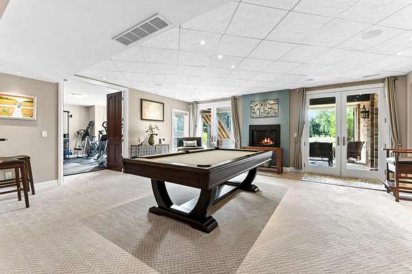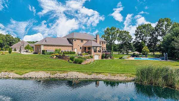 Start Showing Date: 5/5/2026 This extraordinary all-brick and stone estate showcases timeless craftsmanship paired with modern luxury, offering an expansive floor plan and exceptional indoor and outdoor amenities. A dramatic entry welcomes you with a sweeping curved cherry staircase and a soaring 20-foot ceiling. Throughout the home, meticulous attention to detail is evident in the elegant stacked crown molding, 10-foot ceilings, 8-foot solid core doors, a cherry wood barrel ceiling, and a stunning 20-foot coffered ceiling in the great room anchored by a gas fireplace—creating a truly distinctive living space. The gourmet kitchen is designed to impress, featuring dual islands with sinks, quartz countertops, custom cherry cabinetry, a full suite of Wolf and Sub-Zero appliances, and a spacious butler’s pantry. The main level also includes a formal dining area with a wet bar, two guest powder rooms, convenient drop zones off both garages, and a private bedroom suite complete with a walk-in dressing room and luxurious ensuite bath. An elevator shaft, currently utilized as additional closet space, offers flexibility for future installation. Upstairs, abundant natural light enhances the thoughtfully designed layout. The owner’s suite is a private retreat, boasting a tray ceiling, gas fireplace, spa-inspired bath with quartz double vanity, corner soaking tub, tiled walk-in shower, and an expansive custom dressing room. Additional upper-level spaces include a private den with skylights, an open office with built-ins, a loft with beverage center, and two bedrooms connected by a Jack-and-Jill bath with granite double vanity and oversized closets. The walk-out lower level is designed for entertaining, featuring a full theater room with seating, equipment, and sound system, a game room, and a stylish bar area. A temperature-controlled wine room, spacious family room with gas fireplace, and patio access further enhance the space. Wellness amenities include a steam shower, sauna, and a versatile workout room or fifth bedroom with a full bath. A second laundry area, new 50 kW Generac generator, and new HVAC systems add convenience and peace of mind. Outdoors, enjoy a private resort-style setting complete with a saltwater pool, hot tub, outdoor kitchen, and elegant tile decking. A beautifully designed pond with fountain adds to the serene landscape. Car enthusiasts will appreciate the five-car attached heated garage with epoxy floors, drains, gas heaters, and hot/cold wat